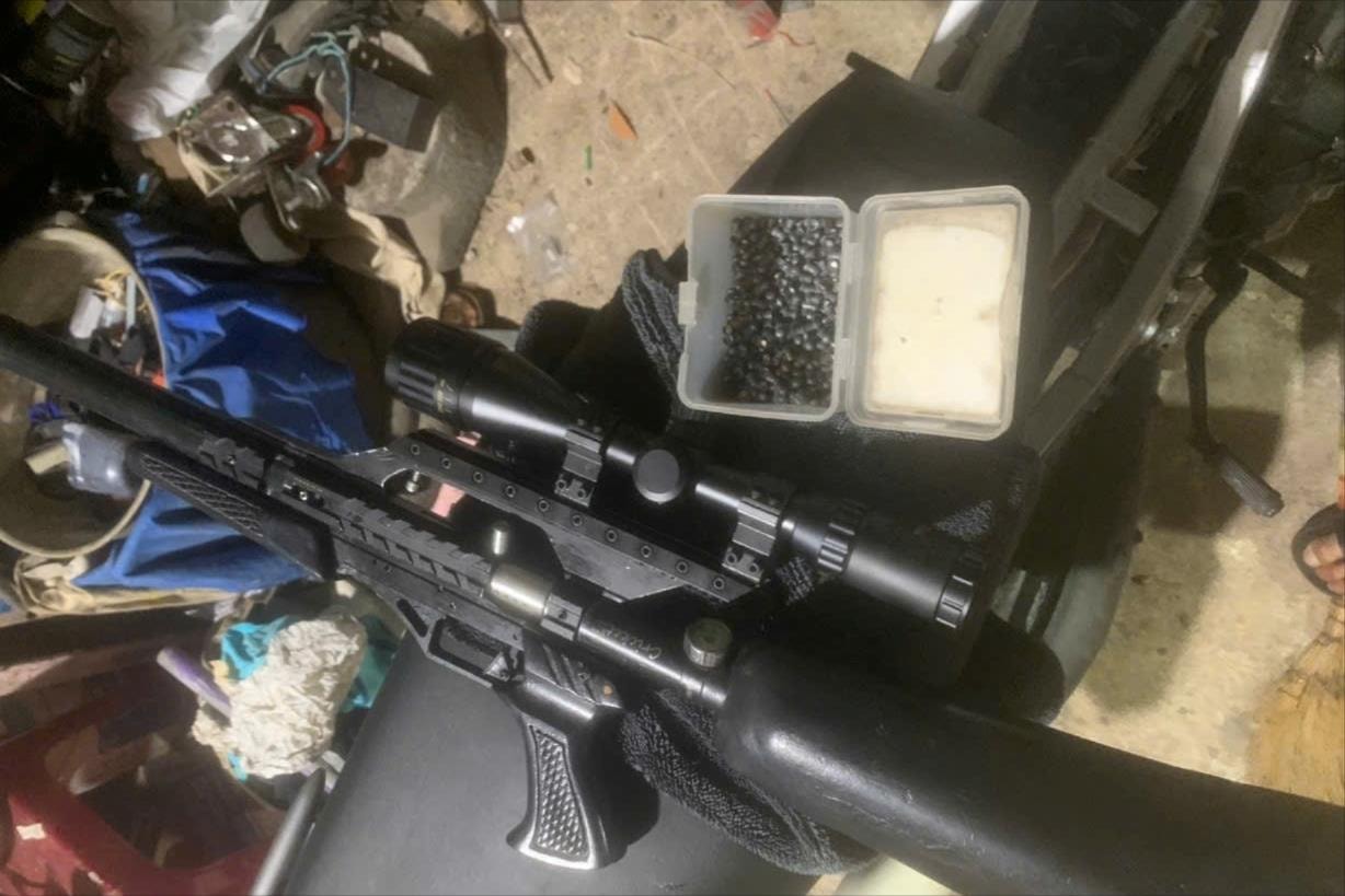 Công an phát hiện súng khí nén cùng nhiều đoạn kim loại tại nơi ở của đối tượng K. Ảnh: Công an cung cấp