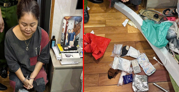 Đối tượng Phùng Thị Ngọc Bích và tang vật thu giữ tại nơi khám xét.