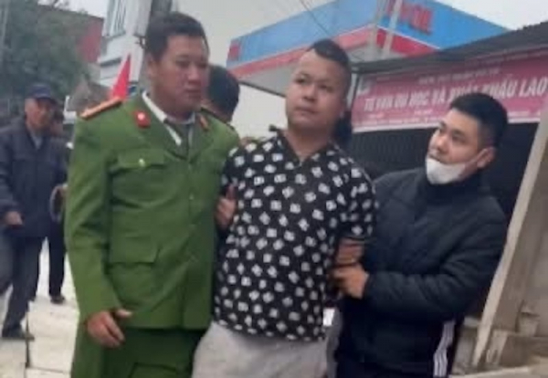 Đối tượng Nguyễn Thành Luân (ở giữa) bị bắt giữ.