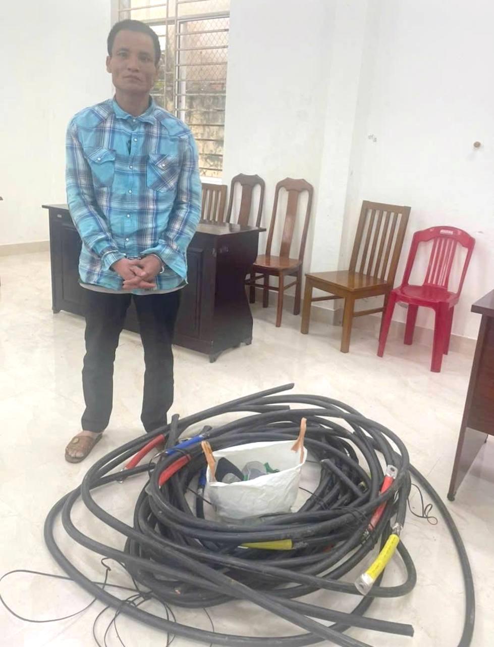 Trần Văn Tuấn cùng tang vật vụ trộm.