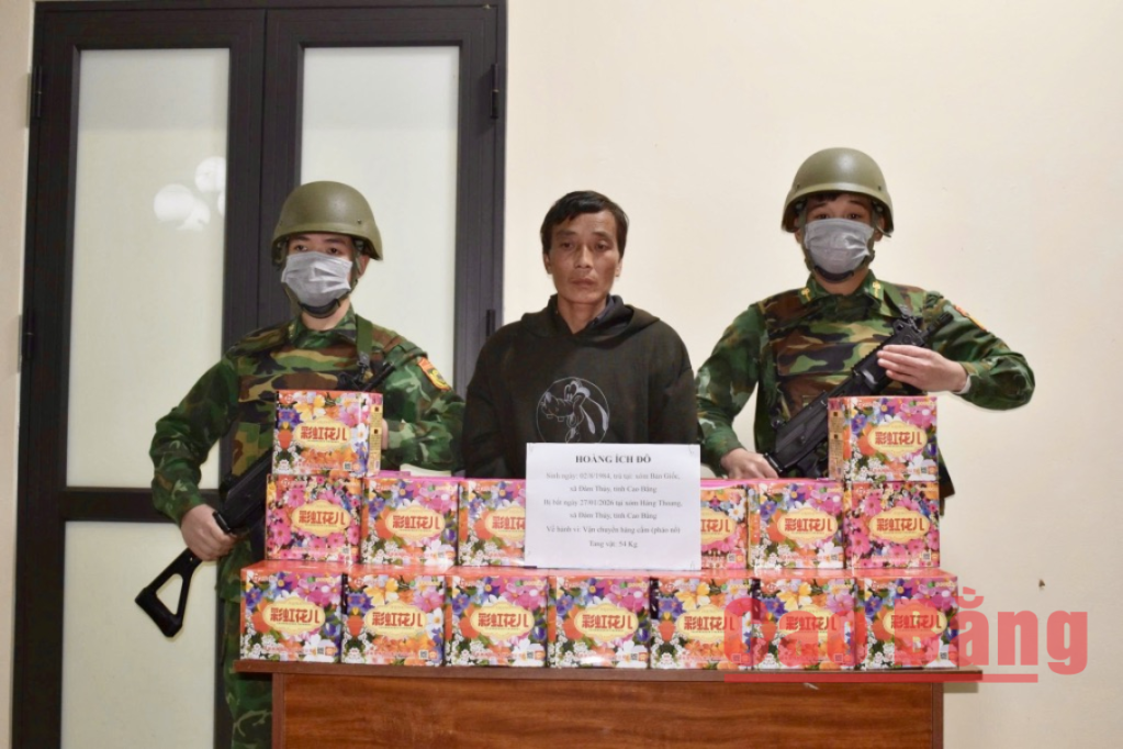 Cụ thể, vào lúc 23 giờ 40 phút ngày 26/1, tại xóm Háng Thoang, xã Đàm Thủy, Tổ công tác thuộc Phòng Nghiệp vụ, Ban Chỉ huy BĐBP tỉnh chủ trì phối hợp với Đồn Biên phòng Đàm Thủy, Phòng Cảnh sát kinh tế, Công an tỉnh đang thực hiện nhiệm vụ, phát hiện bắt quả tang đối tượng Hoàng Ích Đô, sinh năm 1984, thường trú tại xóm Bản Giốc, xã Đàm Thủy, đang có hành vi vận chuyển hàng cấm từ Trung Quốc về Việt Nam. Tang vật thu giữ tại hiện trường gồm 3 bao tải, bên trong có chứa các hình khối hộp, in chữ nước ngoài, nghi là pháo nổ, tổng trọng lượng 54 kg. Đối tượng khai nhận số hàng trên là Pháo hoa nổ được vận chuyển trái phép từ Trung Quốc vào Việt Nam.