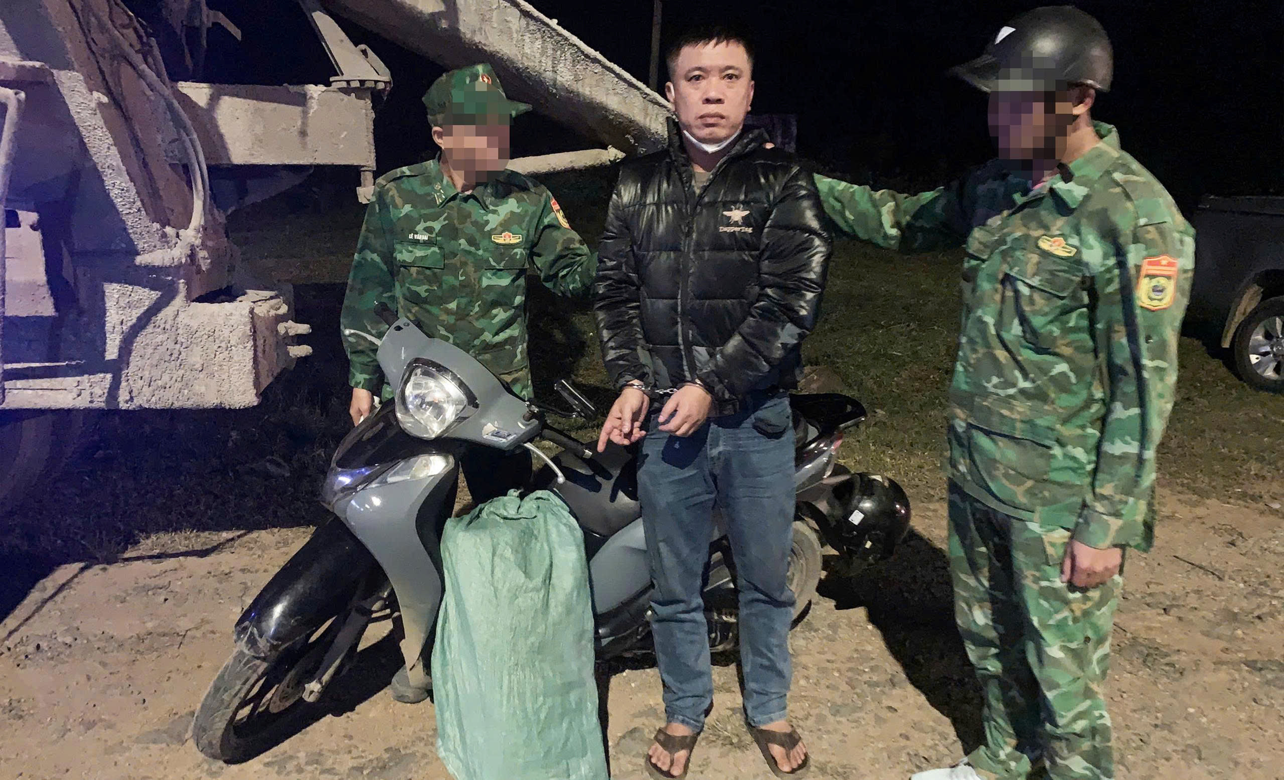 Hoàng Đình Linh Phong đang vận chuyển 14kg pháo hoa nổ tại khu vực biên giới Việt Nam - Lào thì bị lực lượng bộ đội biên phòng bắt quả tang. (Ảnh: Hoài Nam)
