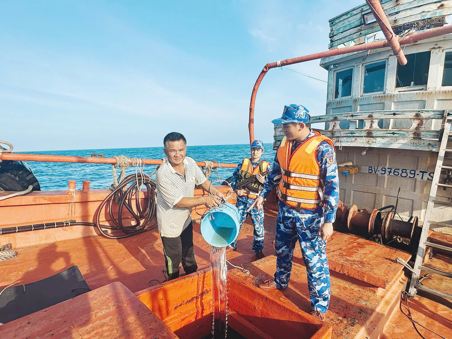Bộ Tư lệnh Vùng Cảnh sát biển 4 kiểm tra tàu cá. (Ảnh Thanh Nghị).