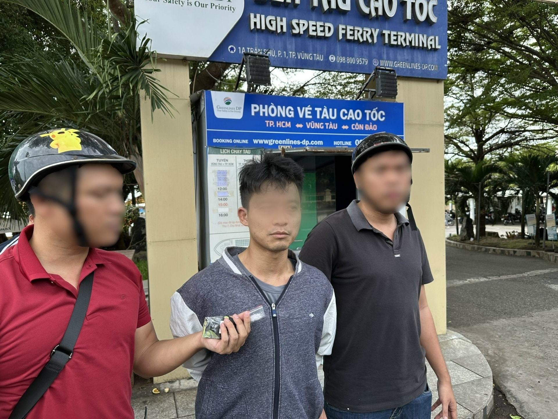 Cũng trong chiều 11/12, tại bến tàu cao tốc Vũng Tàu - TP.HCM, Phòng Phòng chống tội phạm, vi phạm thuộc Bộ Tư lệnh Vùng Cảnh sát biển 3 phối hợp với Công an phường Vũng Tàu và Đội Kiểm soát Hải quan (Chi cục Hải quan Khu vực II) tiến hành kiểm tra, bắt quả tang một đối tượng có hành vi tàng trữ trái phép chất ma túy.