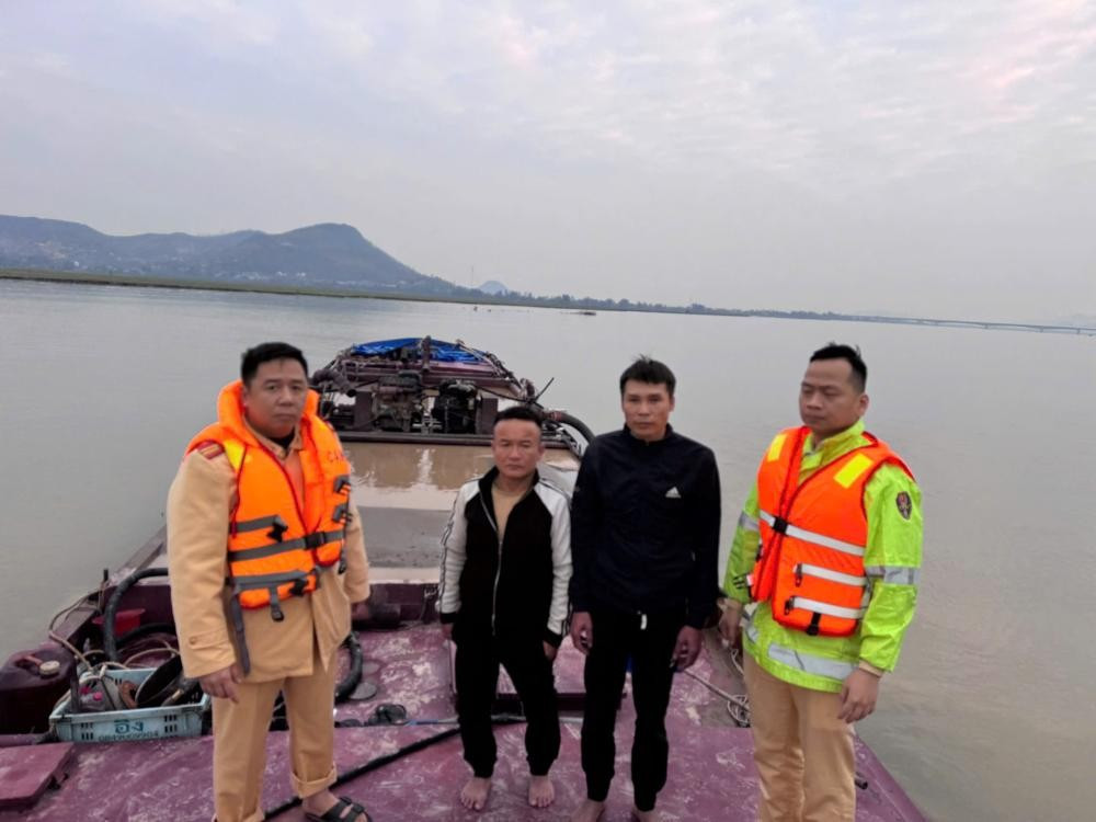 Trước đó, vào khoảng 4h15’ ngày 25/11, trong quá trình tuần tra, kiểm soát trên sông Lam (đoạn qua xã Đức Quang), tổ công tác Phòng Cảnh sát giao thông Công an tỉnh Hà Tĩnh phát hiện một thuyền sắt không có số hiệu đang có hành vi khai thác khoáng sản trái phép.