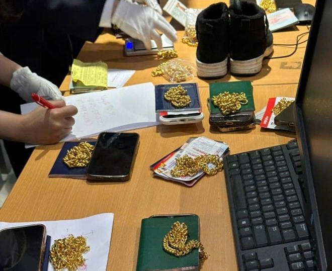 Theo cơ quan Hải quan, thủ đoạn của các đối tượng là mang, đeo trực tiếp trên người hoặc cất giấu trong giày nhằm qua mặt lực lượng kiểm soát.