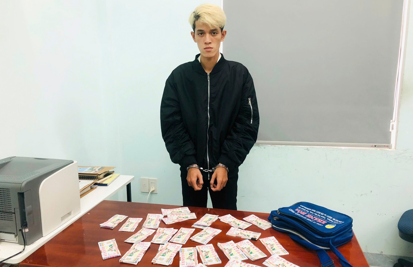 Cọc vé gồm có 460 tờ vé số kiến thiết trị giá 4.600.000 đồng; túi xách bên trong có chứa 1 điện thoại di động, một thẻ căn cước công dân và 2.500.000 đồng tiền mặt. Bà D.T.M bị tật ở chân, điều khiển xe ba bánh.