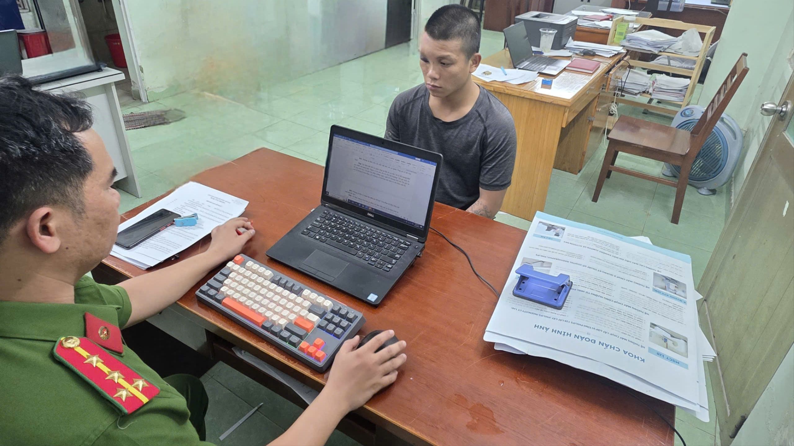 Nguyễn Khắc Phi (27 tuổi, ngụ phường Đông Hòa, TP.HCM) làm việc với cơ quan công an. Ảnh: CA