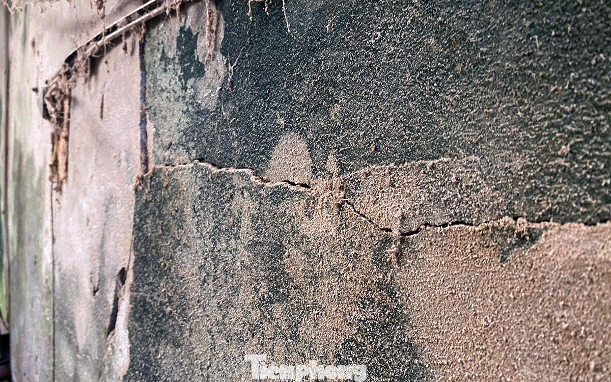 Tường nhà ông Nguyễn Văn Hóa bị nứt vỡ, nguy cơ đổ sập do bị hàng xóm lấn chiếm, xây dựng đè lên một phần diện tích.
