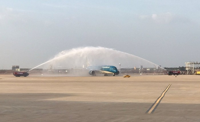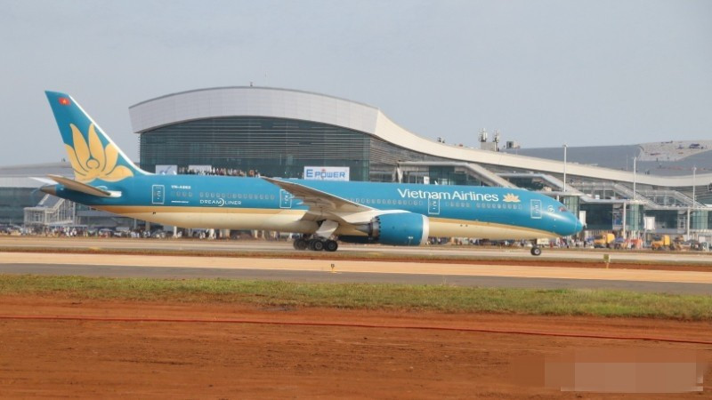 Đúng 16h05 ngày 15/12, tàu bay Boeing 787-9 mang màu sơn Vietnam Airlines đã hạ cánh an toàn xuống Cảng hàng không quốc tế Long Thành (tỉnh Đồng Nai). Ảnh: Tạp chí hàng không