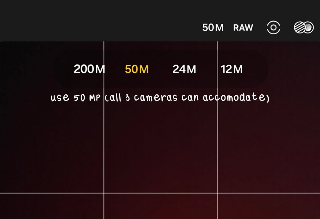 Điều này đồng nghĩa với việc cảm biến chưa được khai thác hết khả năng. Nếu cần ảnh sắc nét hơn, đặc biệt trong trường hợp muốn phóng to hoặc cắt ảnh, người dùng có thể chuyển sang độ phân giải cao hơn bằng cách chạm vào biểu tượng số megapixel trên giao diện camera. Lúc này, hình ảnh sẽ rõ hơn nhưng dung lượng file cũng tăng lên đáng kể.
