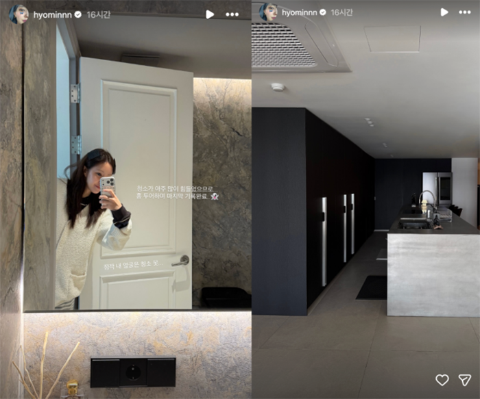 Chia sẻ kèm loạt ảnh, Hyomin hài hước viết: “Dọn dẹp thực sự rất vất vả. Vậy nên coi như đây là bản ghi chép cuối cùng cho chuyến home tour”, khiến người hâm mộ càng thêm thích thú trước sự gần gũi, dí dỏm của nữ ca sĩ.