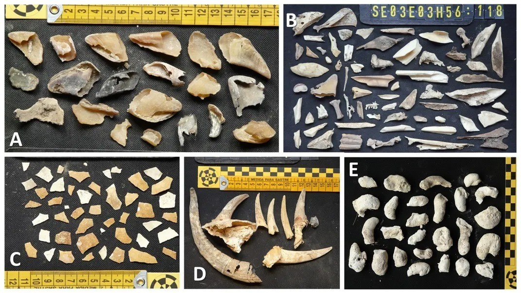 Phần lớn hiện vật được tìm thấy trong tổ liên quan đến chế độ ăn chủ yếu của kền kền râu là xương động vật. Cụ thể, họ tìm thấy 2.117 mảnh xương và 86 móng guốc, cùng với 43 mảnh vỏ trứng. Kền kền râu là loài động vật có xương sống duy nhất trên Trái đất ăn chủ yếu là xương. Ảnh: Sergio Couto.