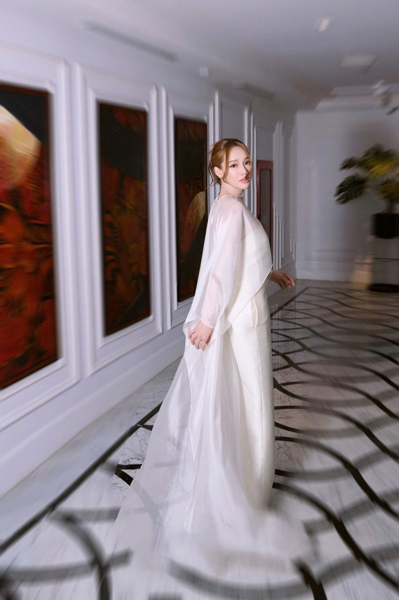 Trên trang cá nhân, bà xã của Trường Giang chia sẻ loạt hình ảnh diện thiết kế đầm cúp ngực thanh lịch.