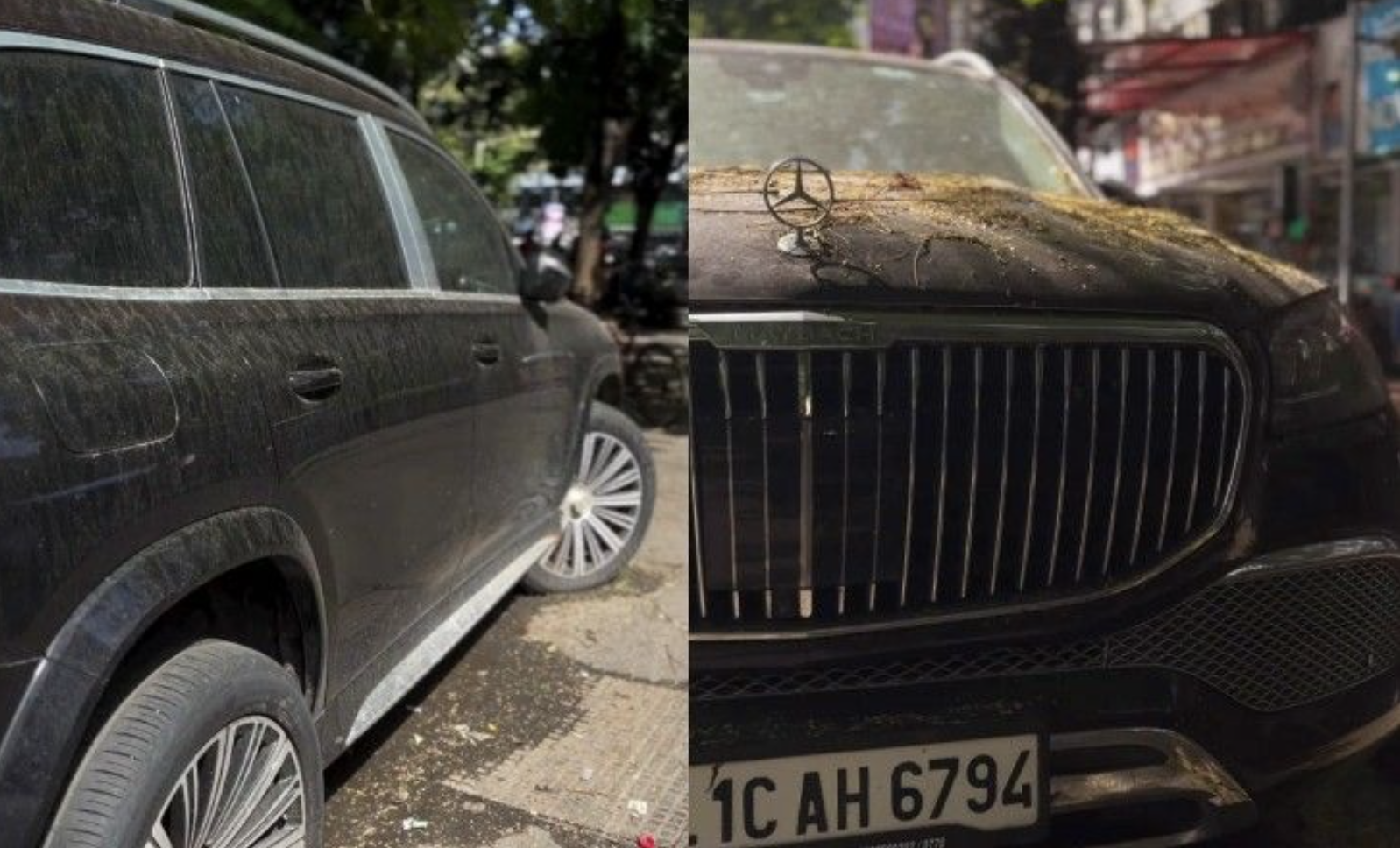 Qua một số hình ảnh được chia sẻ, có thể thấy chiếc SUV hạng sang màu đen bị bỏ mặc giữa tuyến đường đông đúc, phủ đầy lá cây, cành khô và bụi bẩn. Biển số xe đăng ký tại Delhi, biểu tượng “600” phía sau cũng đã biến mất. Theo giới mê xe, đây là chiếc Maybach GLS duy nhất tại Ấn Độ hiện bị bỏ rơi.