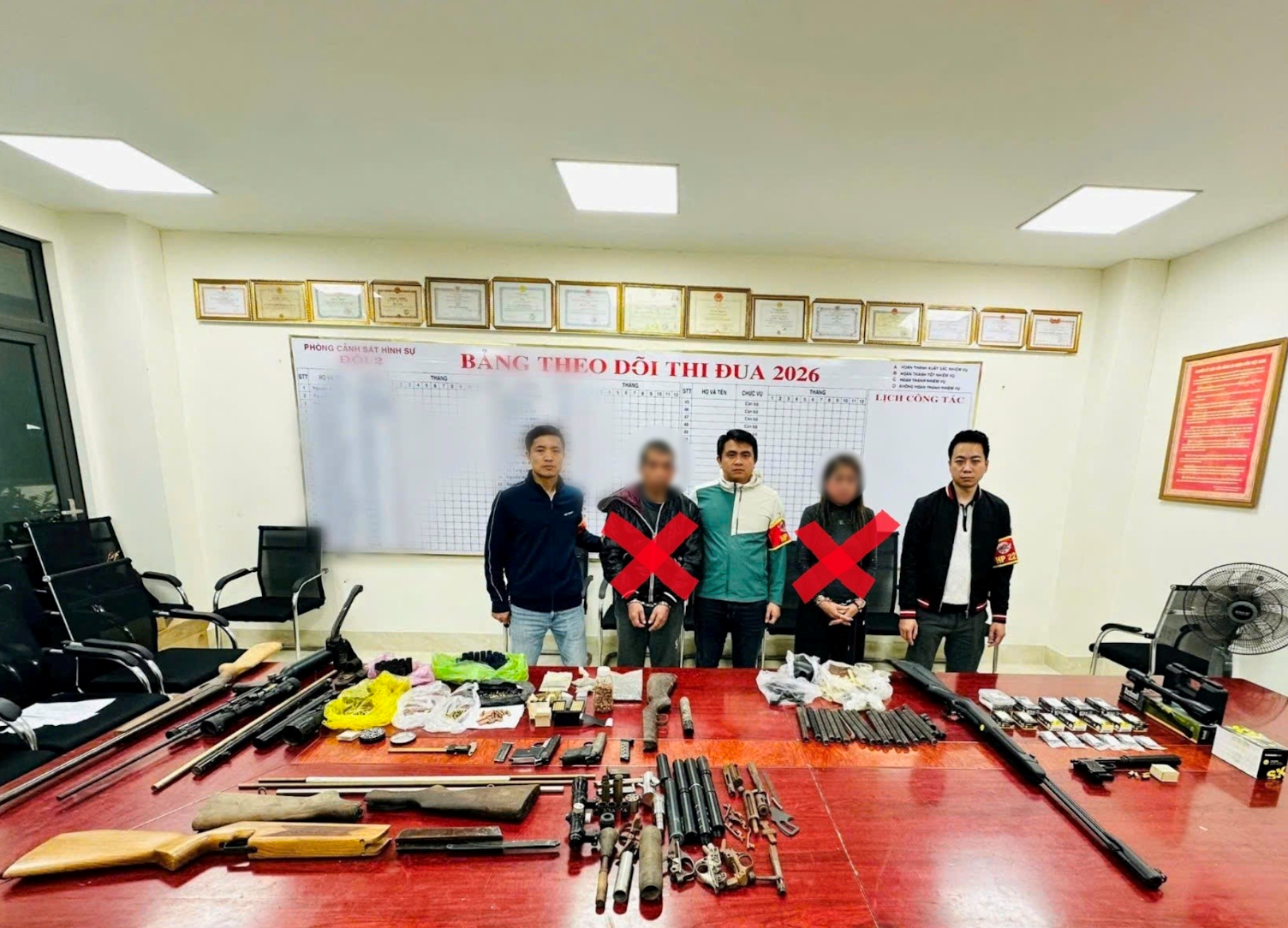 Trước đấy, ngày 4/2/2026, trên tuyến đường Trường Chinh thuộc địa bàn phường Kiến An, lực lượng trinh sát đã bất ngờ khống chế, bắt giữ Phạm Thị Trúc Quỳnh và Lê Minh Tiến khi các đối tượng đang vận chuyển súng, đạn đi giao cho khách.