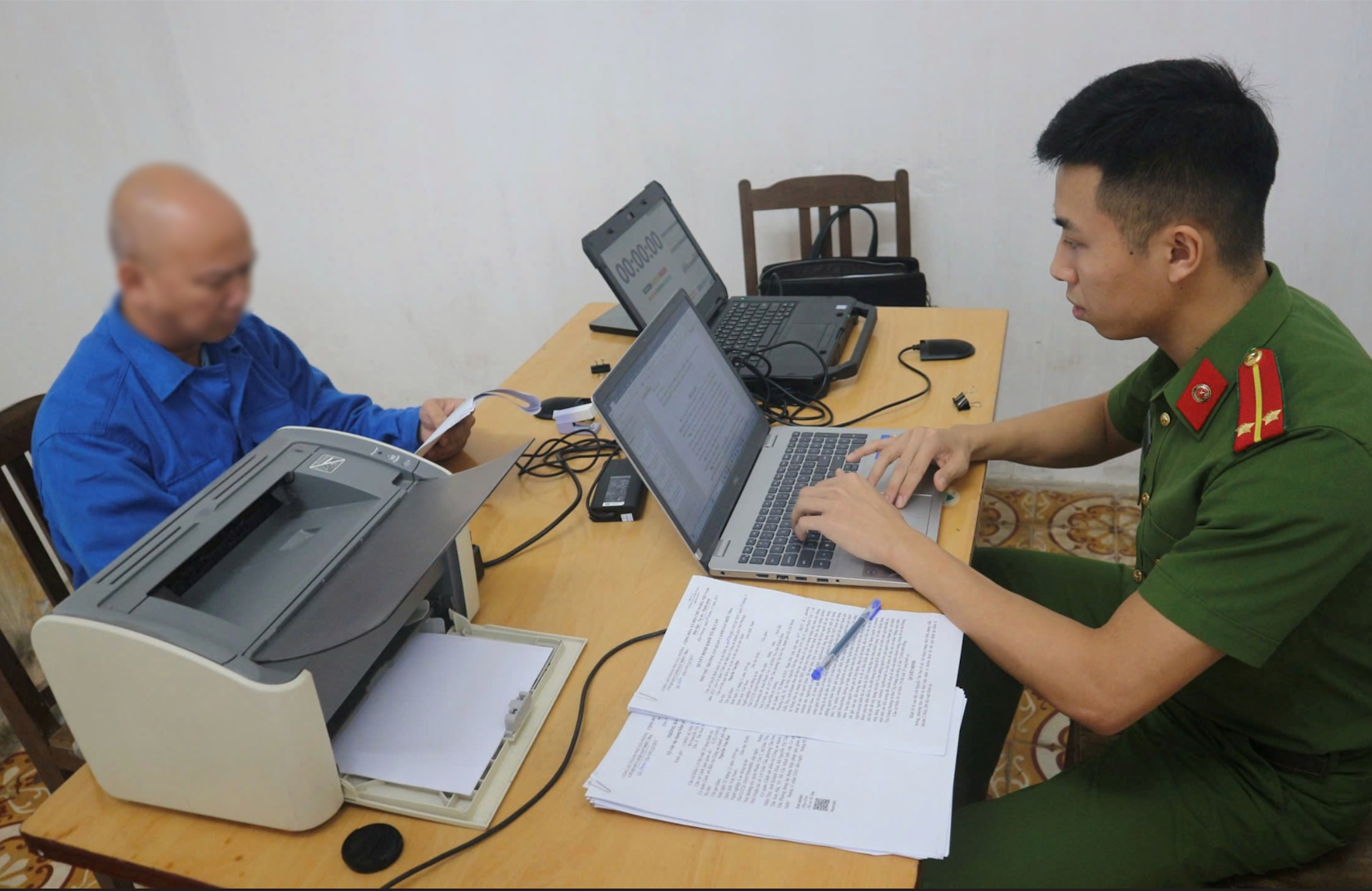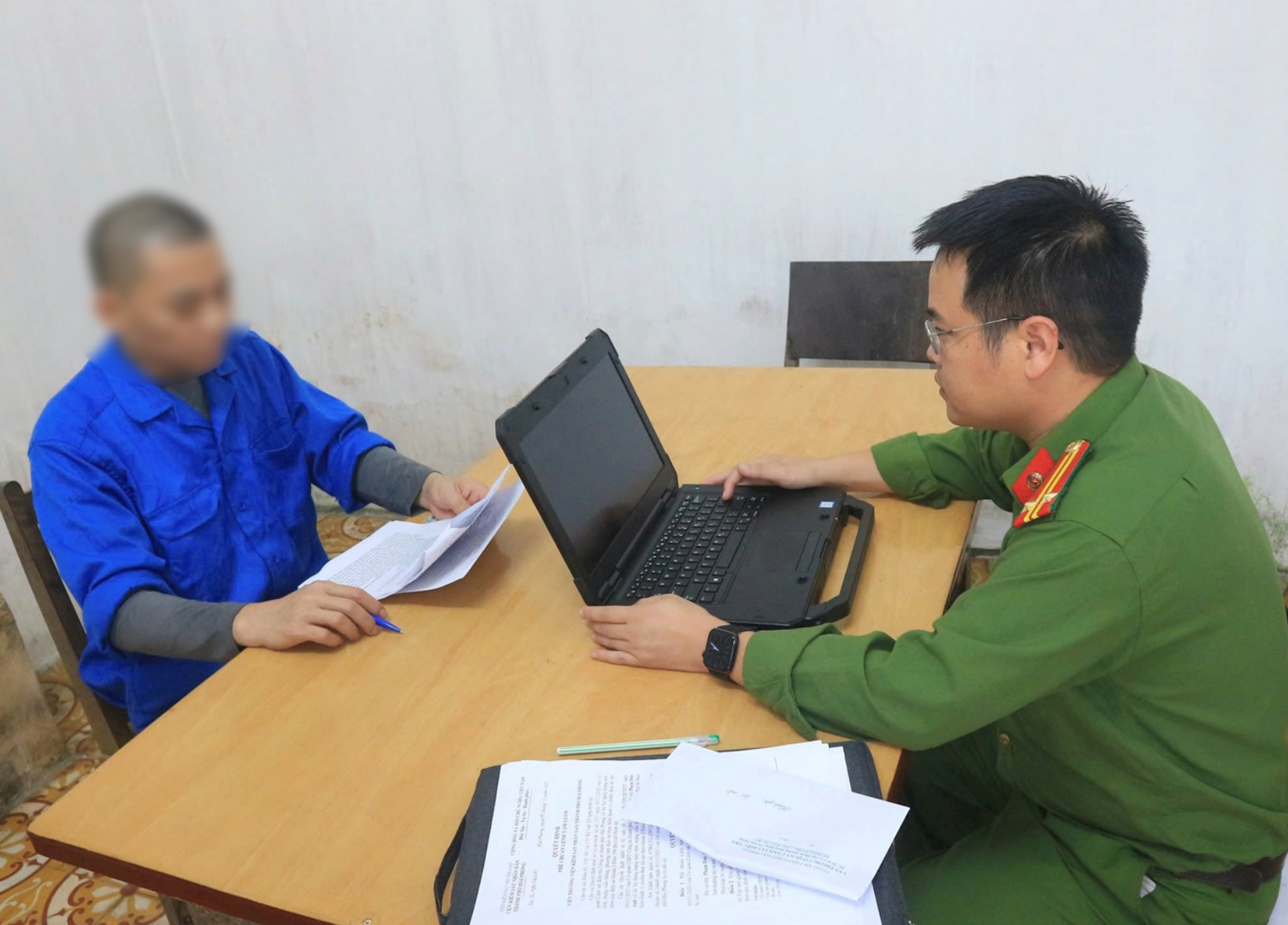 Cơ quan Công an lấy lời khai với các đối tượng có hành vi lừa đảo. (Ảnh: CAHP).