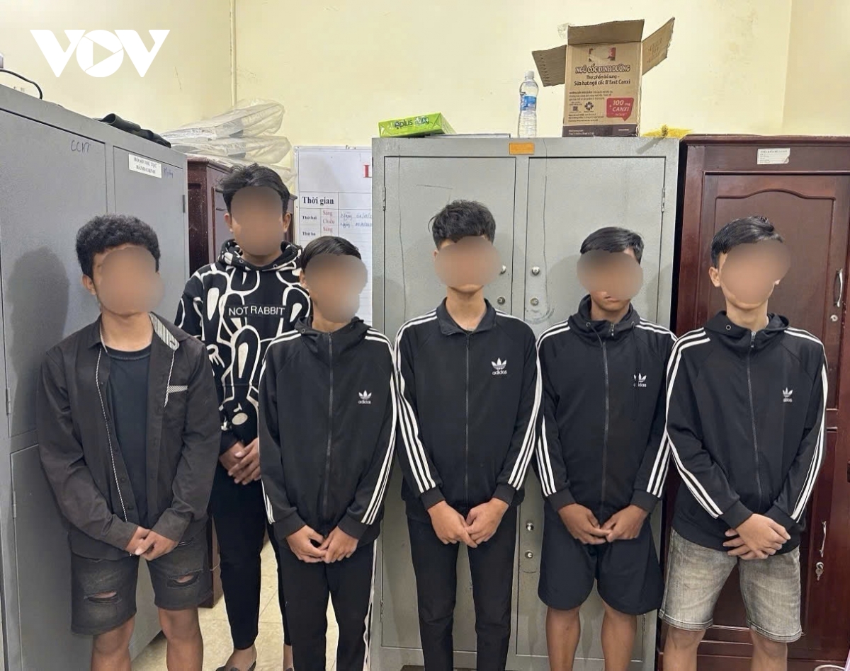 Nhóm thanh thiếu niên trộm vật tư thi công đường cao tốc. Ảnh: Công an thành phố Cần Thơ.