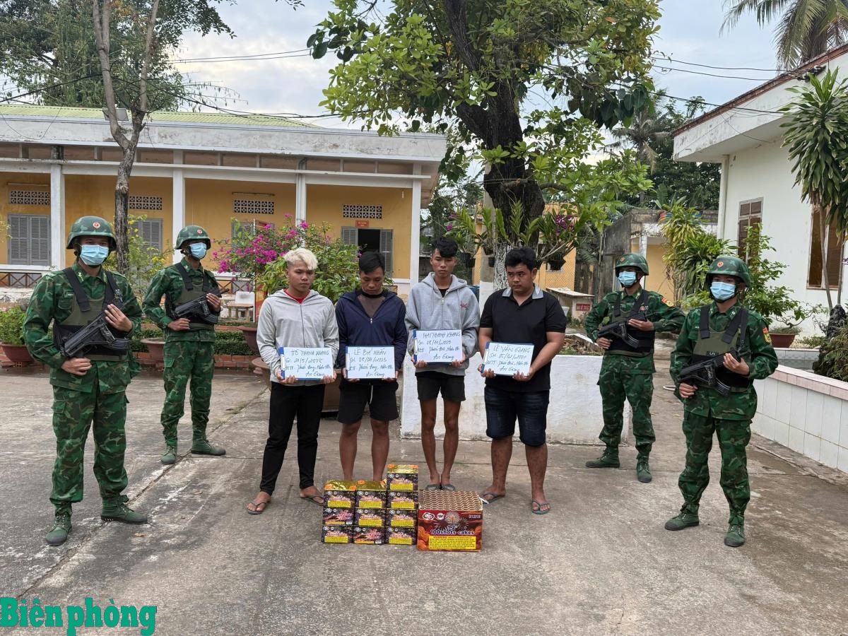 Cụ thể, lúc 15 giờ 30 phút ngày 11/2, tại ấp Thạnh Phú, xã Khánh Bình, tỉnh An Giang, tổ công tác Đồn Biên phòng cửa khẩu Long Bình chủ trì, phối hợp với Đội Đặc nhiệm phòng chống ma túy và tội phạm (Phòng Nghiệp vụ, Bộ đội Biên phòng tỉnh An Giang), Phòng PC03, Công an xã Khánh Bình (Công an tỉnh An Giang) bắt quả tang 4 đối tượng vận chuyển pháo trái phép. Các đối tượng cùng trên 1 vỏ composite vận chuyển ớt trái và pháo nổ từ Campuchia về Việt Nam.