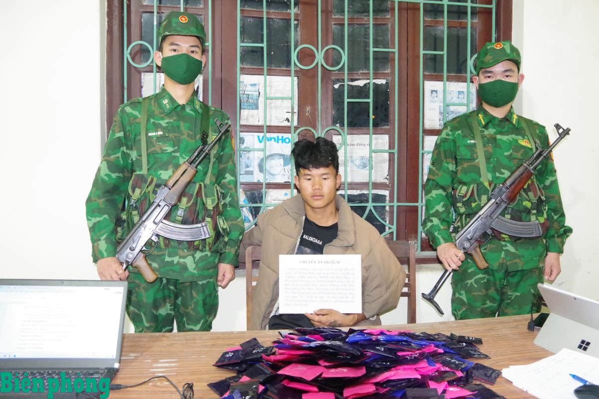 Cụ thể, lúc 17 giờ ngày 24/3, tại khu vực bản Trại Bò, xã Na Son, tỉnh Điện Biên, tổ công tác của các đơn vị phối hợp nói trên tổ chức mật phục, bắt quả tang đối tượng Giàng A Đông (sinh năm 2003, trú tại bản Tư Làng, xã Mường Bám, tỉnh Sơn La) đang vận chuyển 60.000 viên ma túy tổng hợp.