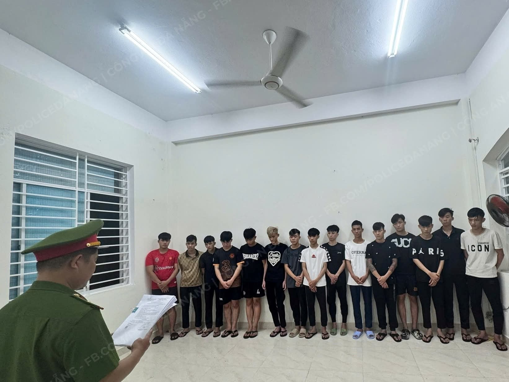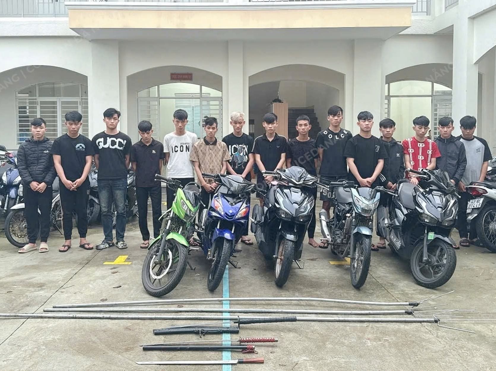 Tại cơ quan công an, các đối tượng đã thừa nhận toàn bộ hành vi vi phạm pháp luật. Căn cứ tài liệu, chứng cứ thu thập được, cơ quan điều tra đã ra quyết định khởi tố và bắt tạm giam 15 đối tượng, gồm: Nguyễn Quang Khải (SN 2006), Mai Văn Chương (SN 2009), Huỳnh Trần Hoàng Trường (SN 2007), Nguyễn Trường Phúc (SN 2007), Lê Hoàng Long (SN 2009), Phạm Duy (SN 2008), Huỳnh Văn Khiêm (SN 2009), Lê Minh Quý (SN 2008), Lê Gia Huy (SN 2008), Nguyễn Trần Hùng (SN 2009), Đặng Văn Vũ (SN 2009), Huỳnh Văn Anh Tuấn (SN 2007), Mai Tấn Bôn (SN 2007), Trương Minh Huy (SN 2006) và Nguyễn Văn Phong (SN 2008) đều trú tại các phường Hòa Khánh (TP Đà Nẵng).
