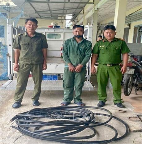 * Ngày 3/3, theo thông tin từ Công an xã Vị Thủy, thành phố Cần Thơ, đơn vị này vừa phát hiện, bắt quả tang một người đàn ông giả dạng công nhân điện lực có hành vi cắt trộm cáp quang của nhà mạng VNPT.