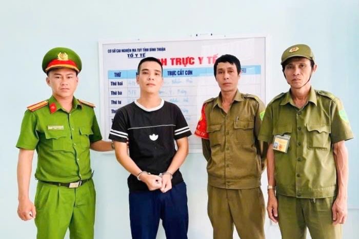 Lực lượng công an thi hành lệnh bắt tạm giam đối tượng Võ Trung Tuyển (SN 1991), trú tại khu phố Phú Thành, phường Hàm Thắng