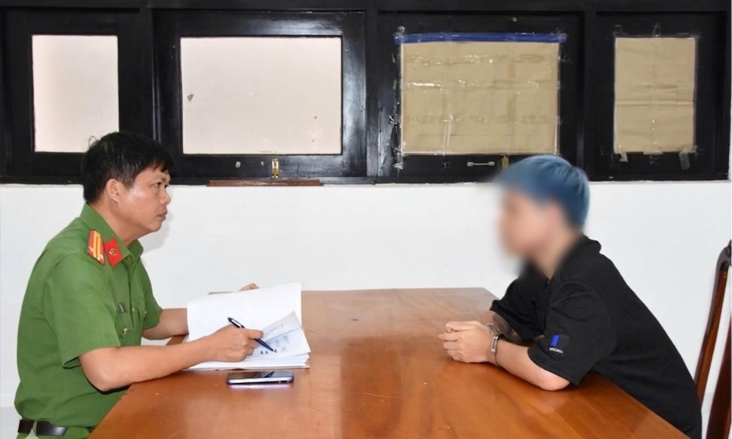 Cơ quan công an làm việc với đối tượng Nguyễn Gia Hoàng.