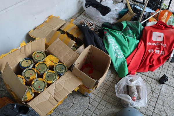 Đến ngày 16/12/2025, Phòng Cảnh sát hình sự đã phối hợp Công an xã Bình Hòa, tỉnh An Giang tiến hành bắt giữ các đối tượng trên tại nhà trọ thuê trên địa bàn xã. Khám xét nhà trọ nơi các đối tượng ở, lực lượng Công an thu giữ nhiều thùng nước sơn, mắm tôm, xe môtô và nhiều vật dụng khác có liên quan.
