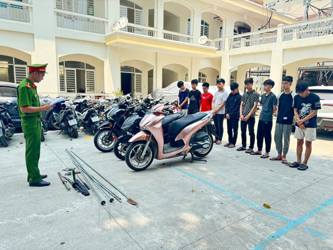 Sau đó, các nhóm tiếp tục tụ tập, chuẩn bị thêm hung khí nguy hiểm như dao phóng lợn, ba chĩa, kiếm… rồi truy đuổi nhau qua nhiều tuyến đường, gây mất an ninh trật tự, tiềm ẩn nguy cơ gây hậu quả nghiêm trọng.
