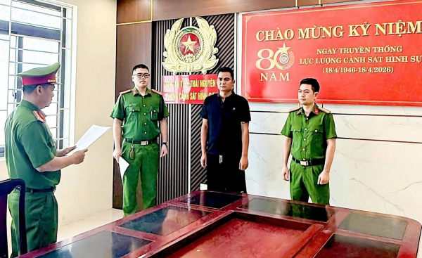 Cơ quan CSĐT Công an tỉnh Thái Nguyên đọc lệnh bắt giữ đối tượng Nguyễn Trọng Tuân.