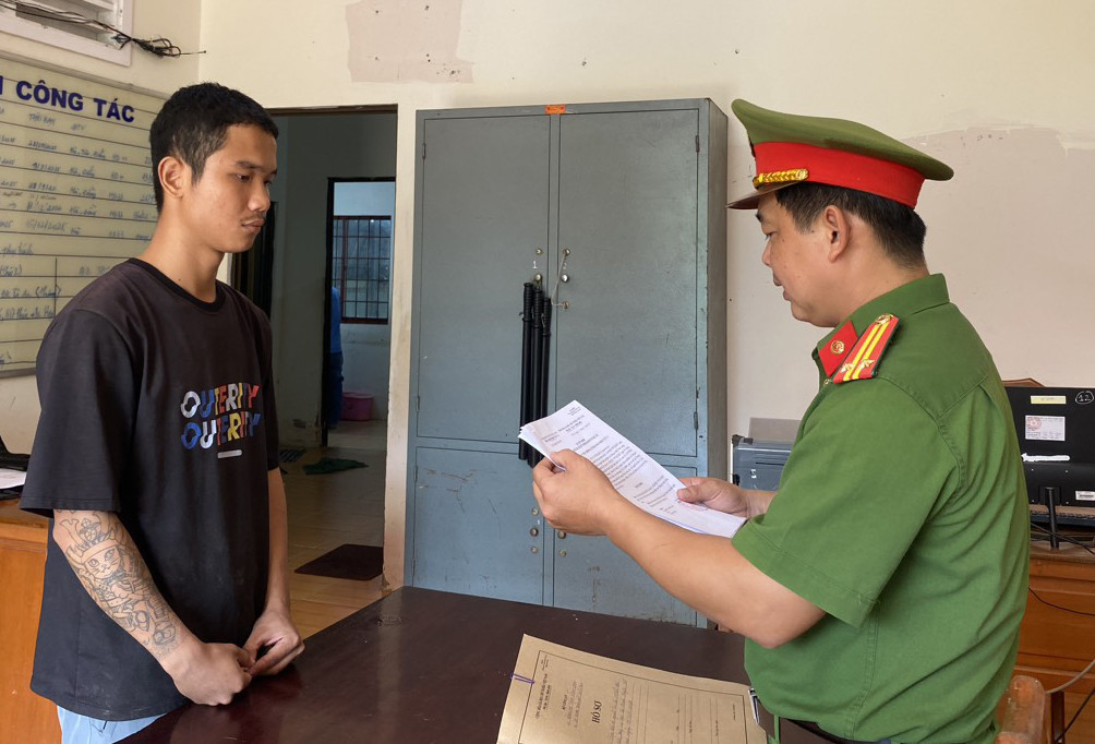 Cơ quan điều tra đọc quyết định khởi tố, bắt tạm giam đối với Kiến An. Ảnh: Công an tỉnh Vĩnh Long