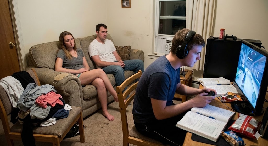Hơn nữa, sự lệch pha về nếp sống giữa người đi làm và sinh viên là một "cực hình". Trong khi vợ chồng tôi cần không gian yên tĩnh để nghỉ ngơi sau ngày dài làm việc, thì cậu em lại thường xuyên "cày đêm" với tiếng gõ phím chơi game lạch cạch, tiếng cười đùa qua tai nghe hay những lần lục đục nấu mì tôm lúc 1-2 giờ sáng. Đáng sợ nhất là vấn đề vệ sinh và việc nhà; cảnh tượng nhà tắm bừa bộn, quần áo vứt lung tung hay chậu bát đũa chất đống chờ chị dâu về giải quyết khiến tôi nhiều lúc cảm thấy mình như đang "nuôi" thêm một đứa con lớn xác chứ không phải sống cùng một người trưởng thành. Những ẩn ức nhỏ nhặt ấy tích tụ mỗi ngày, biến tổ ấm trở nên bí bách, khiến tôi chỉ mong ngóng từng ngày em ra trường để vợ chồng được trả lại sự tự do đúng nghĩa.