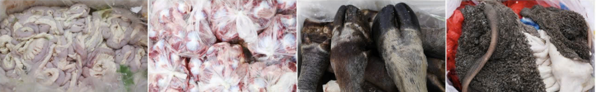 Qua kiểm tra, lực lượng chức năng phát hiện trên xe đang vận chuyển 2.659 kg thực phẩm không rõ nguồn gốc xuất xứ, gồm nhiều loại như nội tạng động vật, xương ống động vật, mỡ động vật và chân trâu.