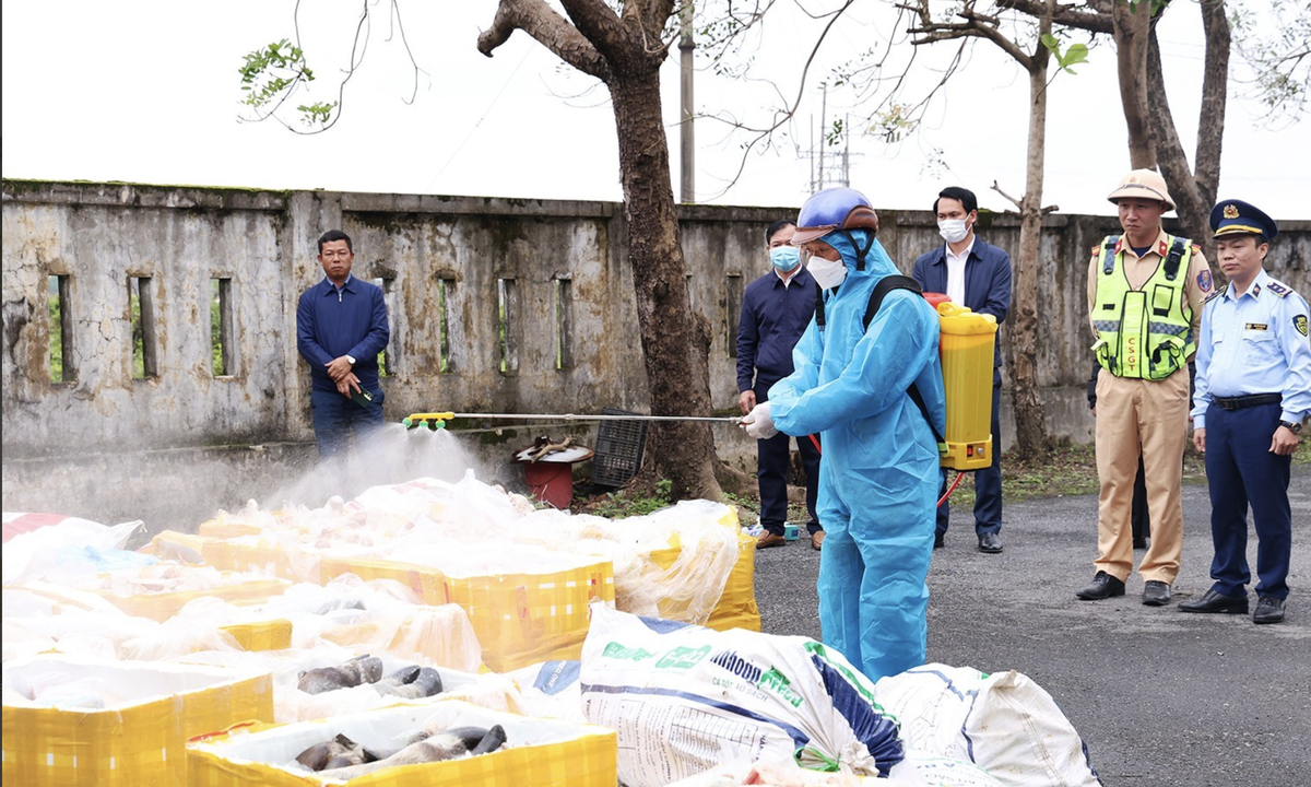 Sau khi xác minh, Đội Quản lý thị trường số 3 Hà Tĩnh đã lập biên bản vi phạm hành chính và phối hợp với các lực lượng chức năng tiến hành tiêu hủy toàn bộ 2.659 kg thực phẩm vi phạm theo đúng quy định của pháp luật.