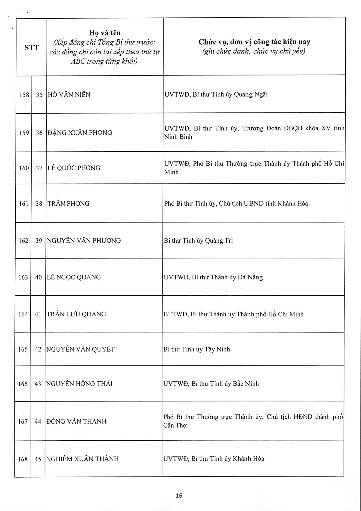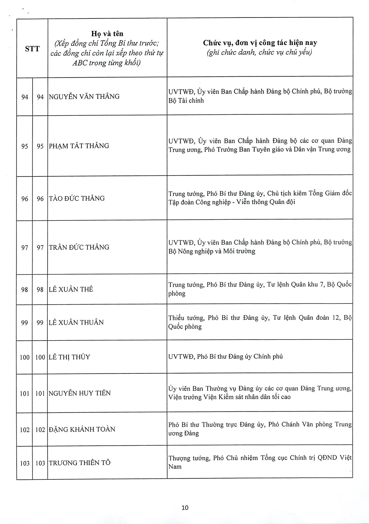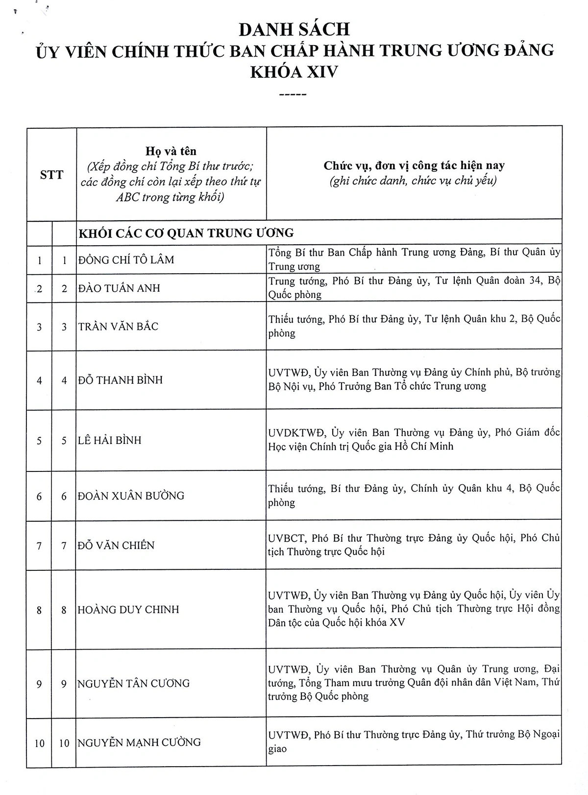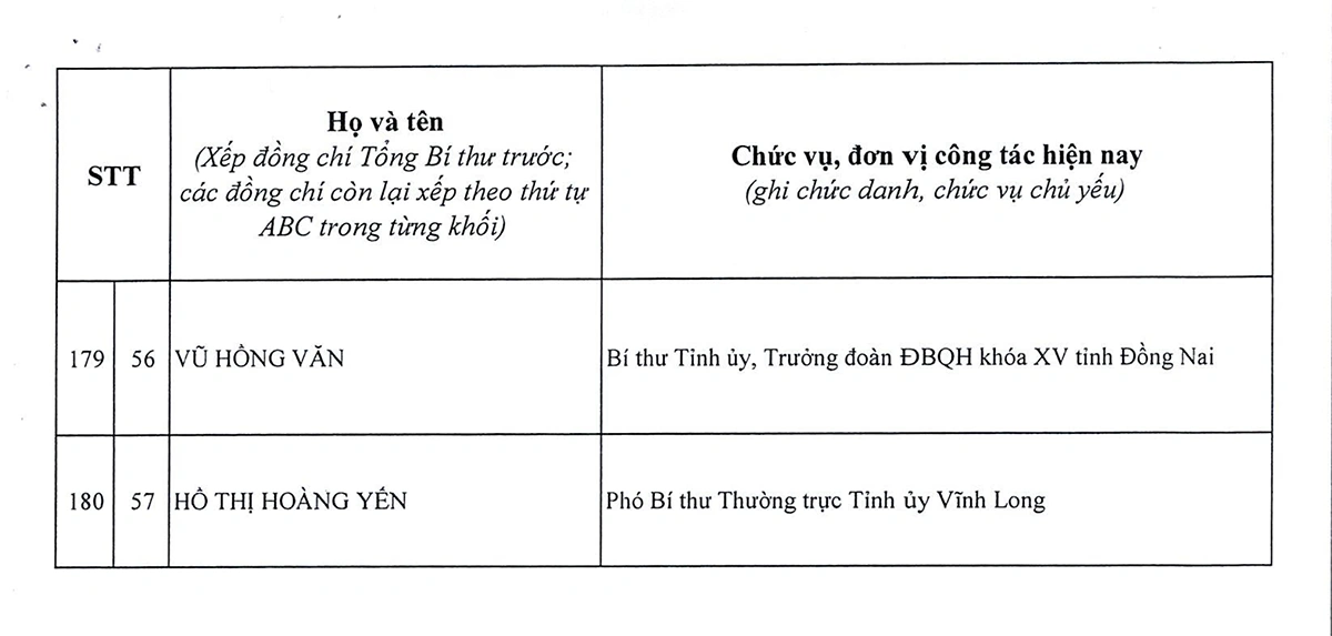DANH SÁCH 180 ĐỒNG CHÍ ỦY VIÊN BAN CHẤP HÀNH TRUNG ƯƠNG ĐẢNG KHÓA XIV