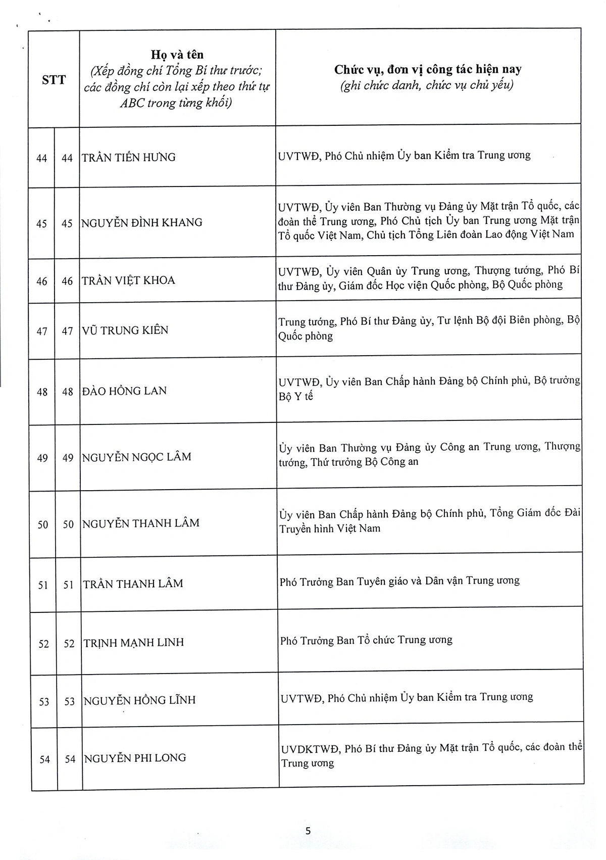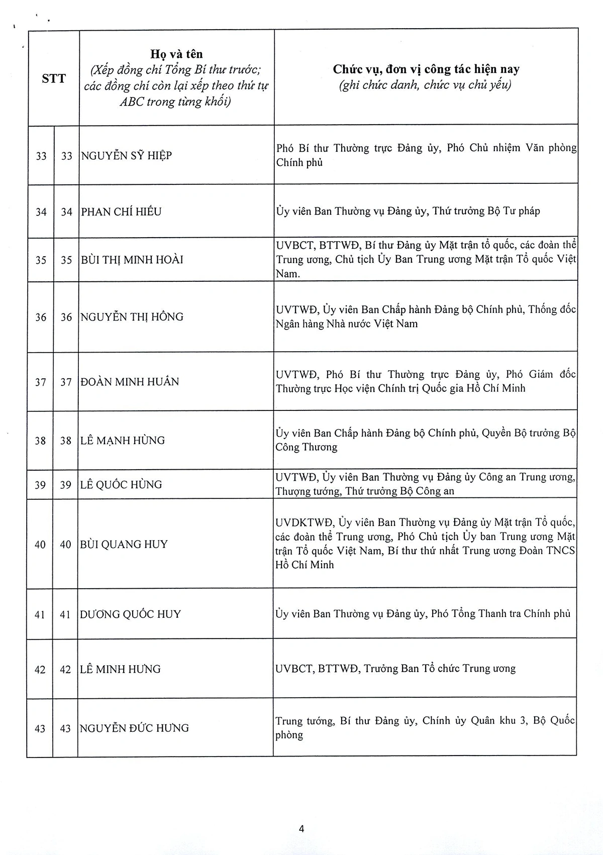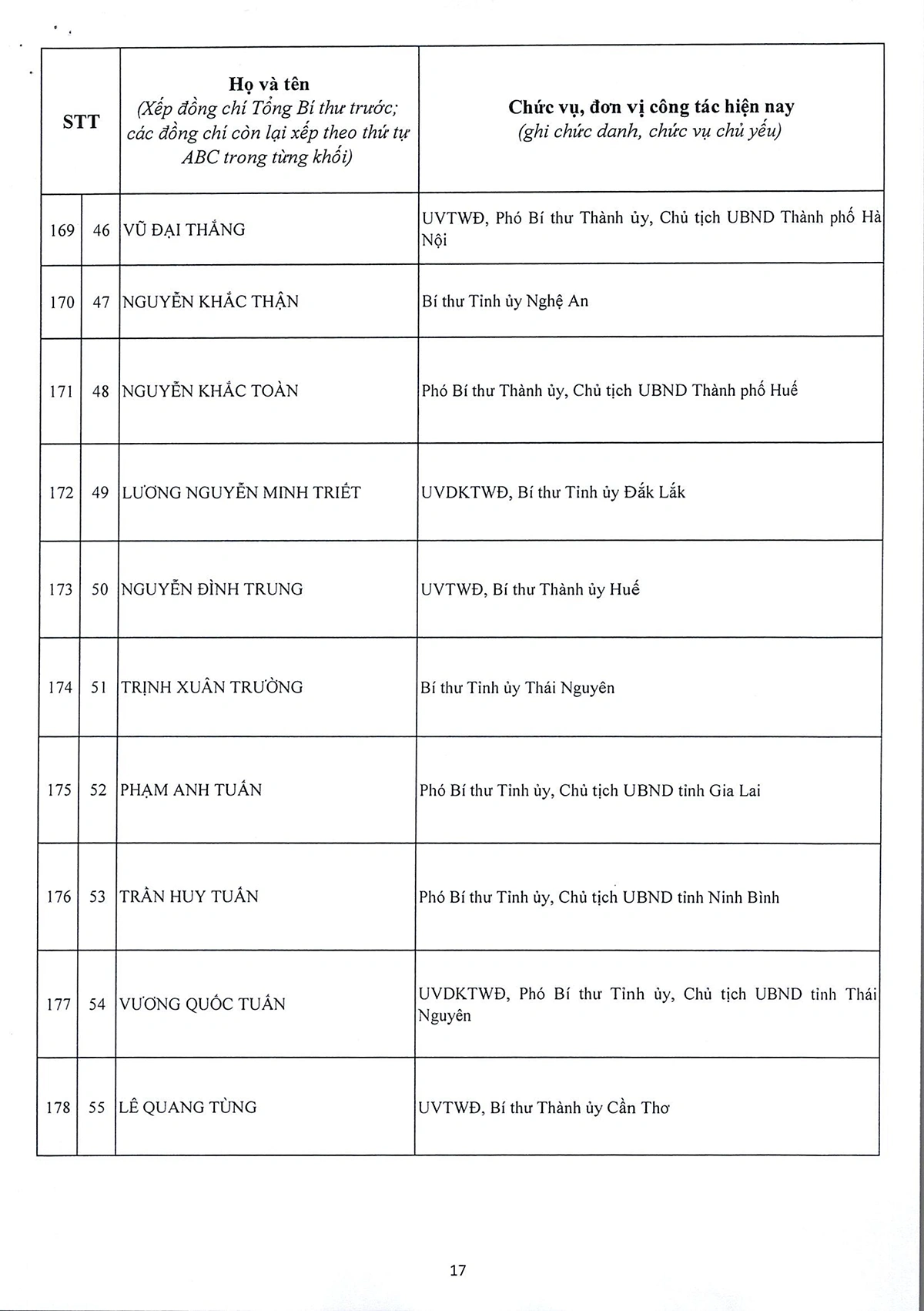 DANH SÁCH 180 ĐỒNG CHÍ ỦY VIÊN BAN CHẤP HÀNH TRUNG ƯƠNG ĐẢNG KHÓA XIV