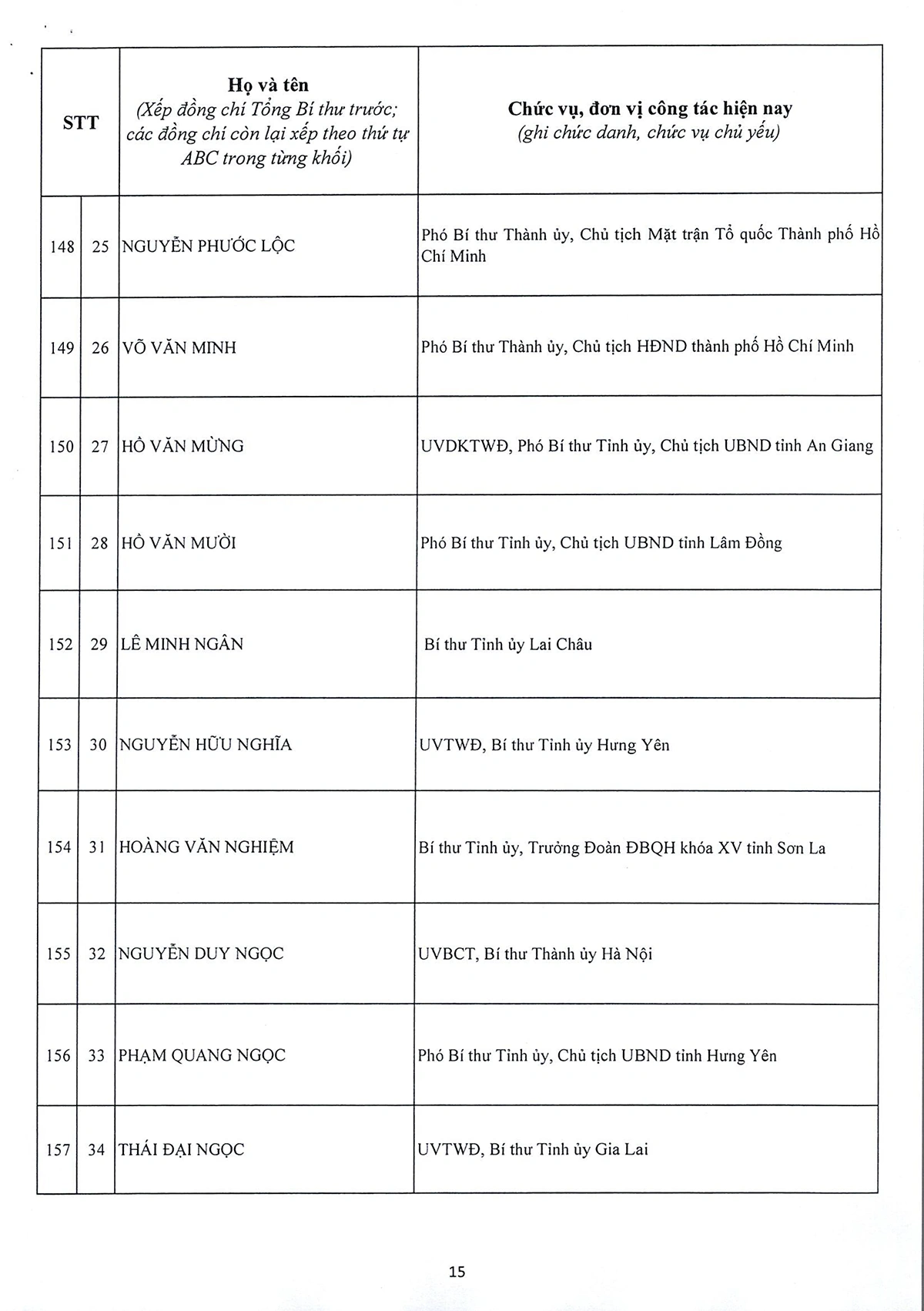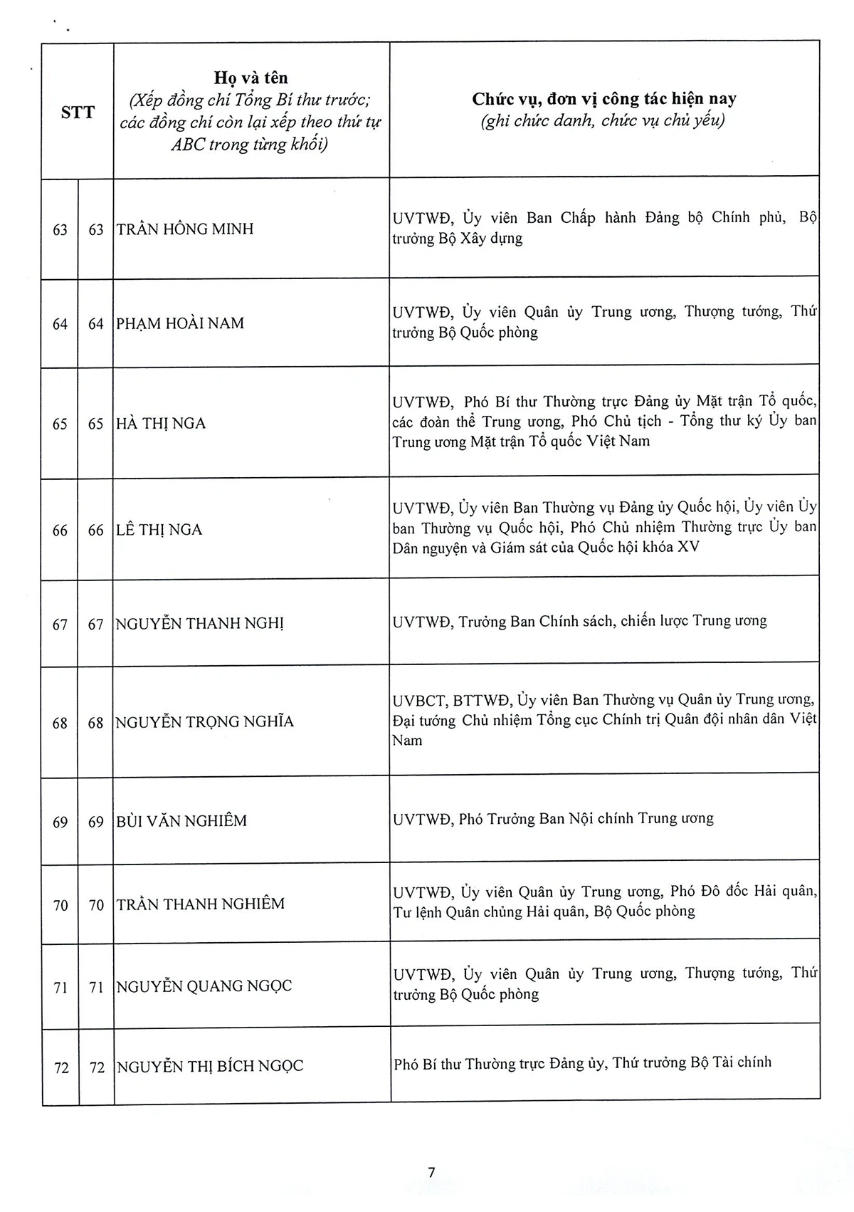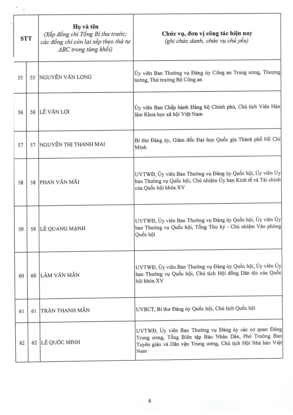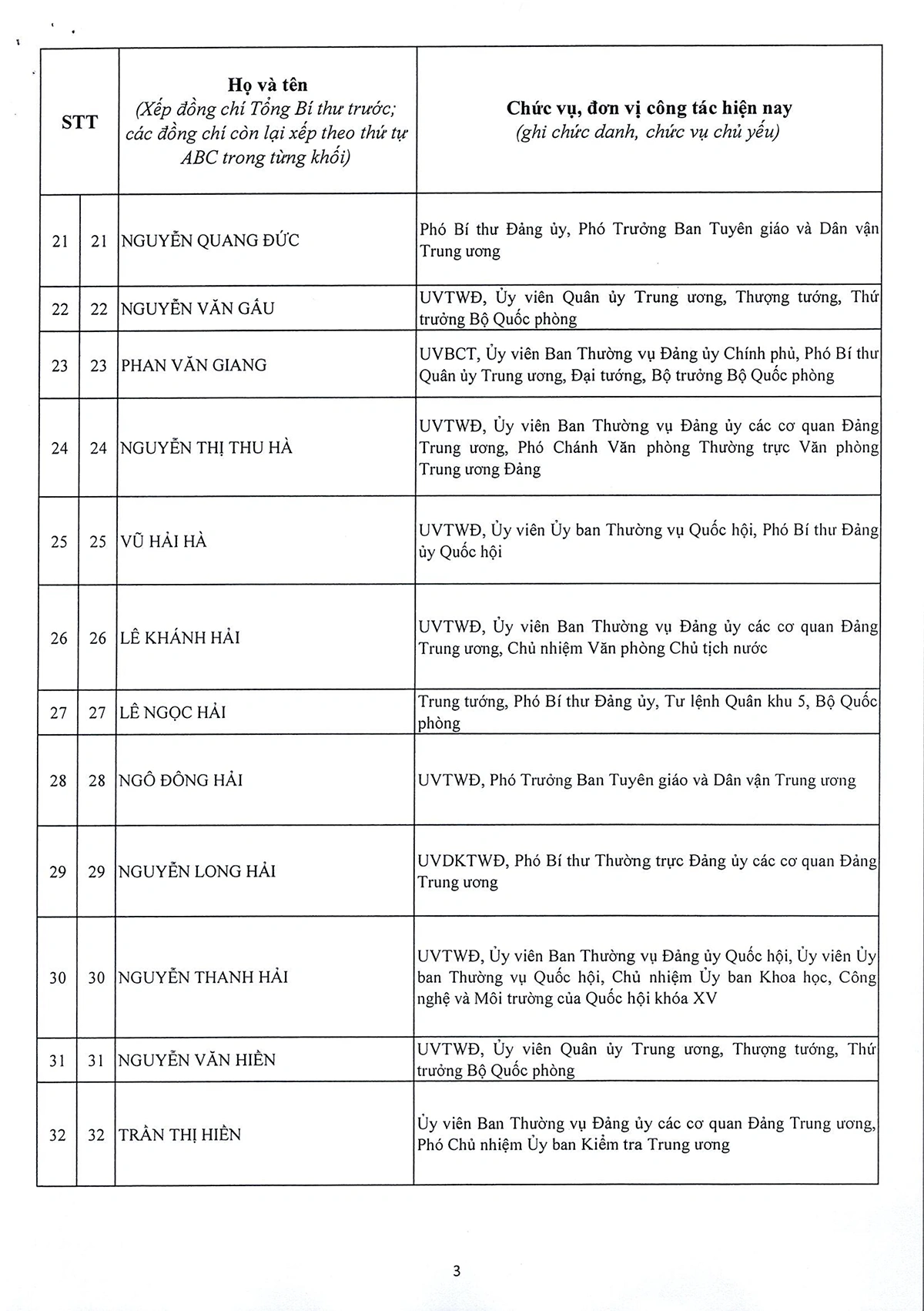DANH SÁCH 20 ĐỒNG CHÍ ỦY VIÊN DỰ KHUYẾT BAN CHẤP HÀNH TRUNG ƯƠNG ĐẢNG KHÓA XIV