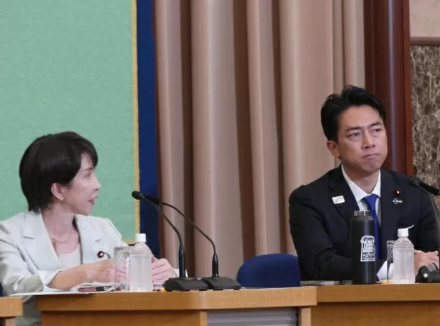 Cựu Bộ trưởng An ninh kinh tế Takaichi Sanae (trái) và Bộ trưởng Nông, lâm, ngư nghiệp Koizumi Shinjiro. (Nguồn: Nikkans Sport)