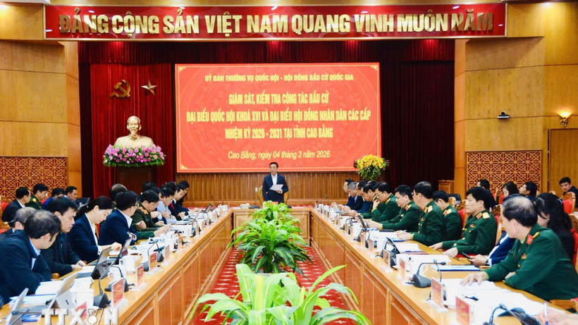 Ủy ban Thường vụ Quốc hội, Hội đồng bầu cử quốc gia tổ chức giám sát, kiểm tra công tác bầu cử đại biểu Quốc hội khóa XVI và Hội đồng Nhân dân các cấp nhiệm kỳ 2026 - 2031 tại tỉnh Cao Bằng. (Ảnh: TTXVN)