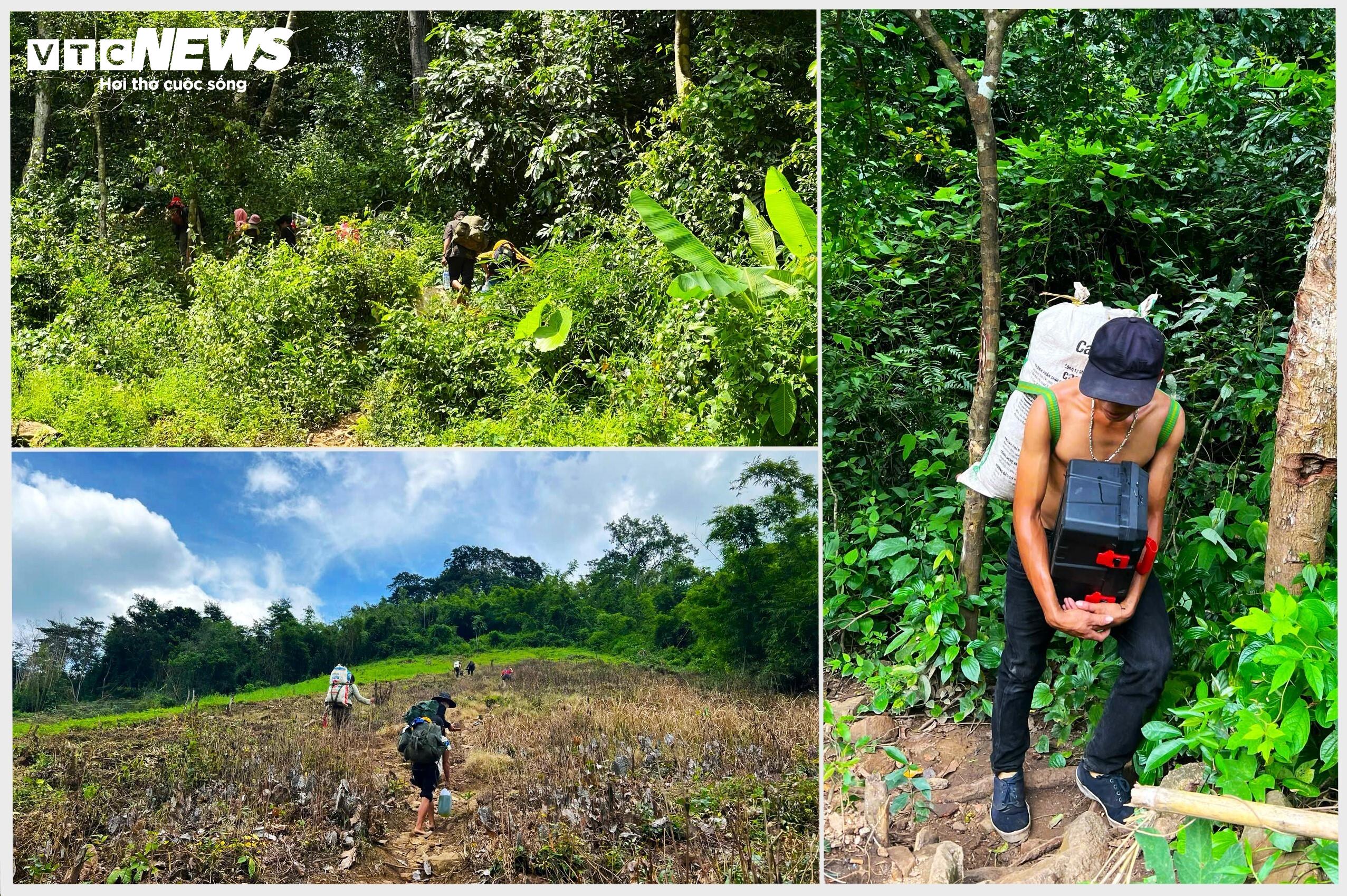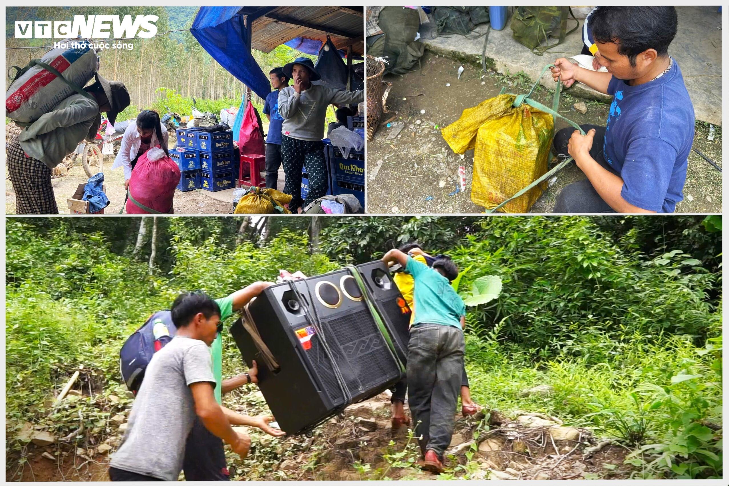 Hằng tuần đều có những tốp người cõng trên lưng đồ vật, nhu yếu phẩm như loa, đài, quần áo, xăng xe và thức ăn từ dưới xuôi đưa về làng.