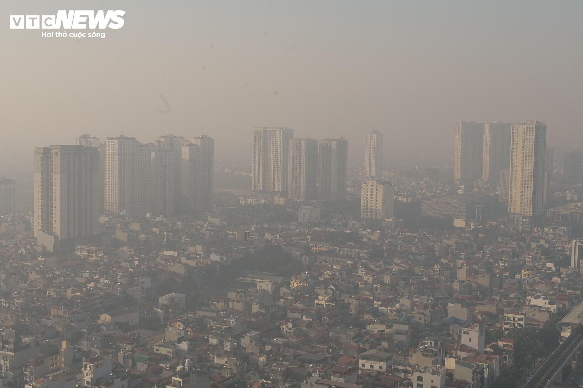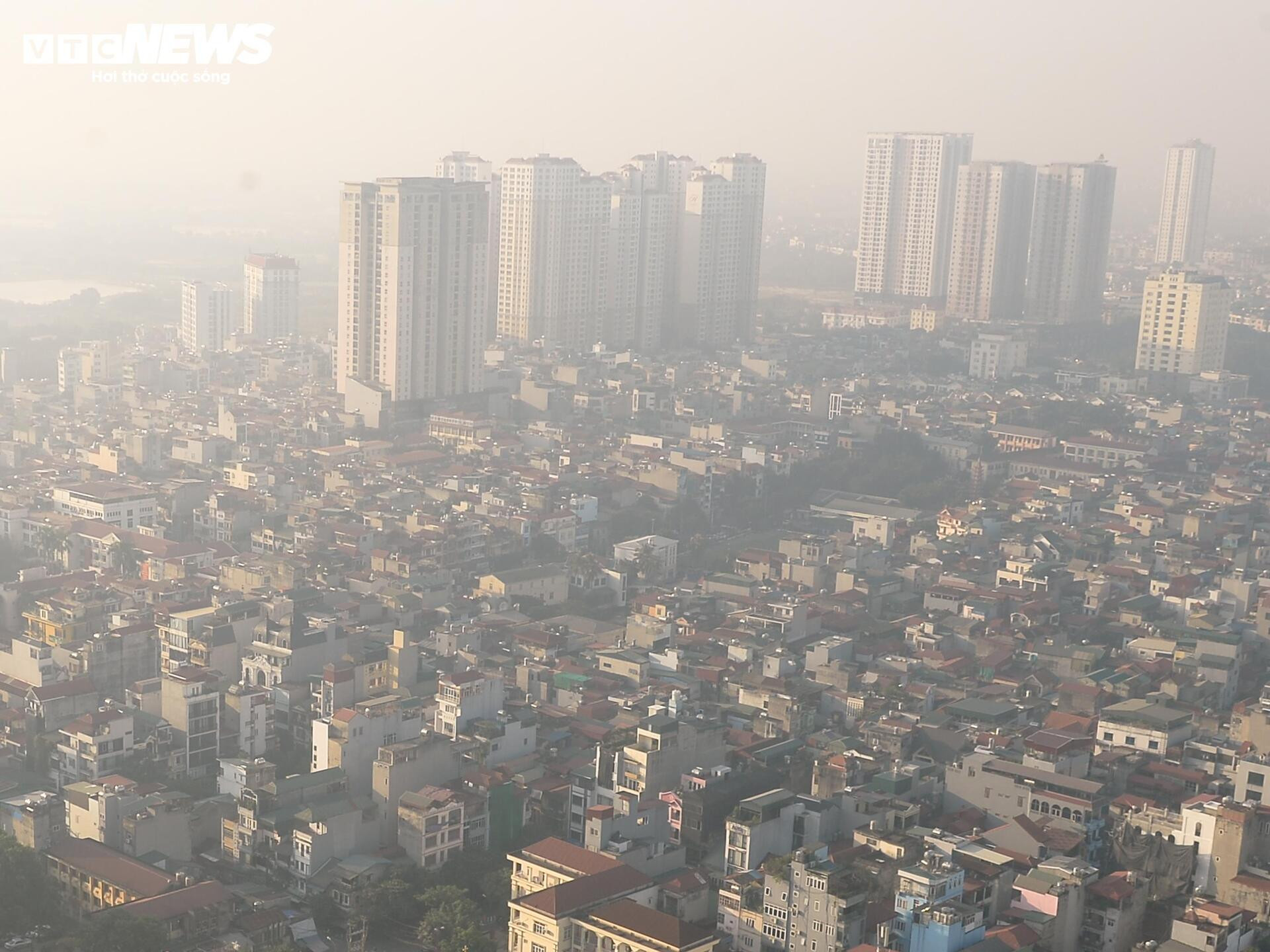 Lớp sương mù mờ ảo dưới ánh mặt trời, tạo nên khung cảnh xám xịt trên các tuyến phố.