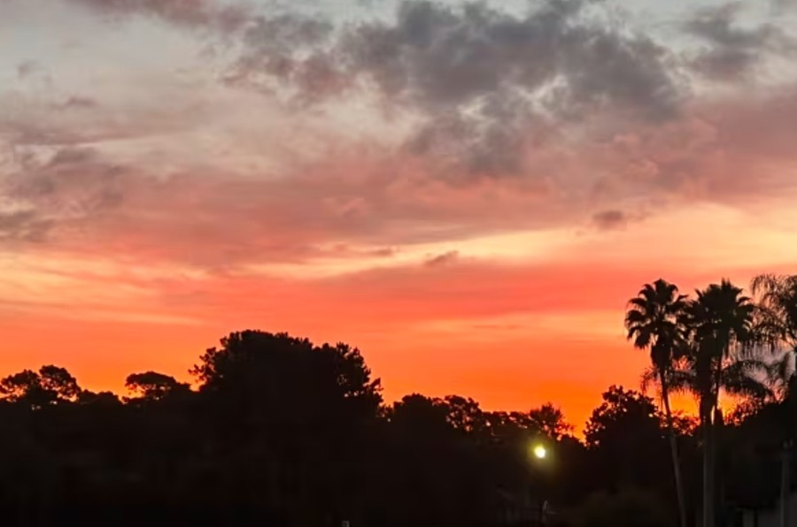 Đây là ảnh chụp ở thời điểm muộn hơn một chút: Vùng trời phía đằng xa có màu vàng.