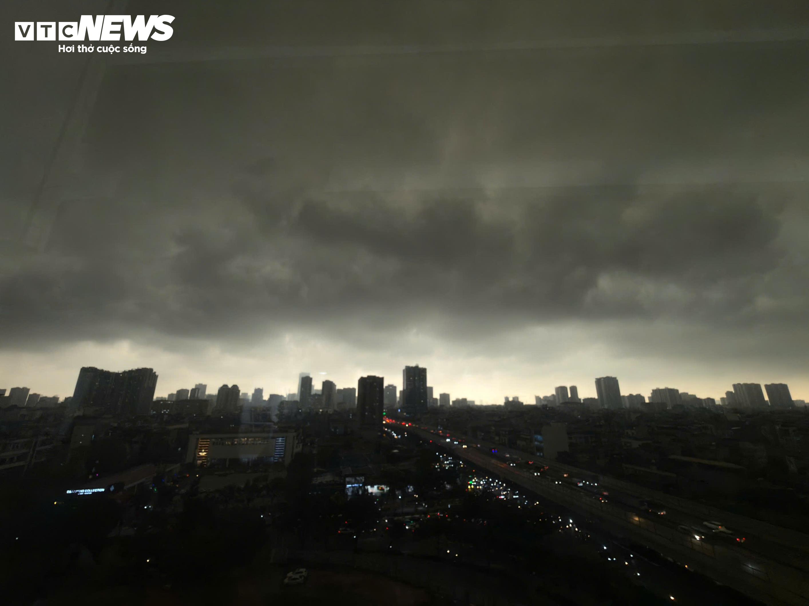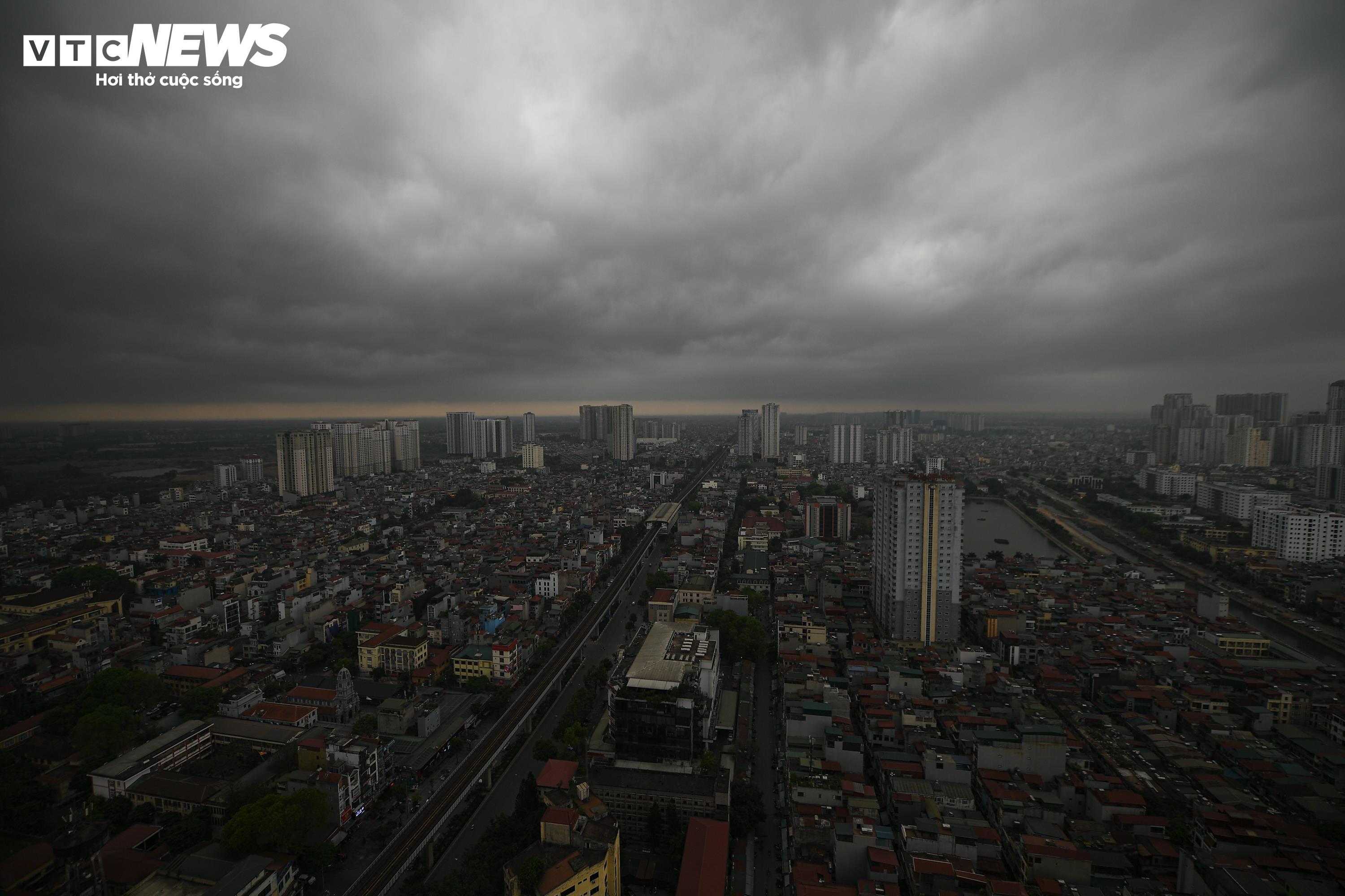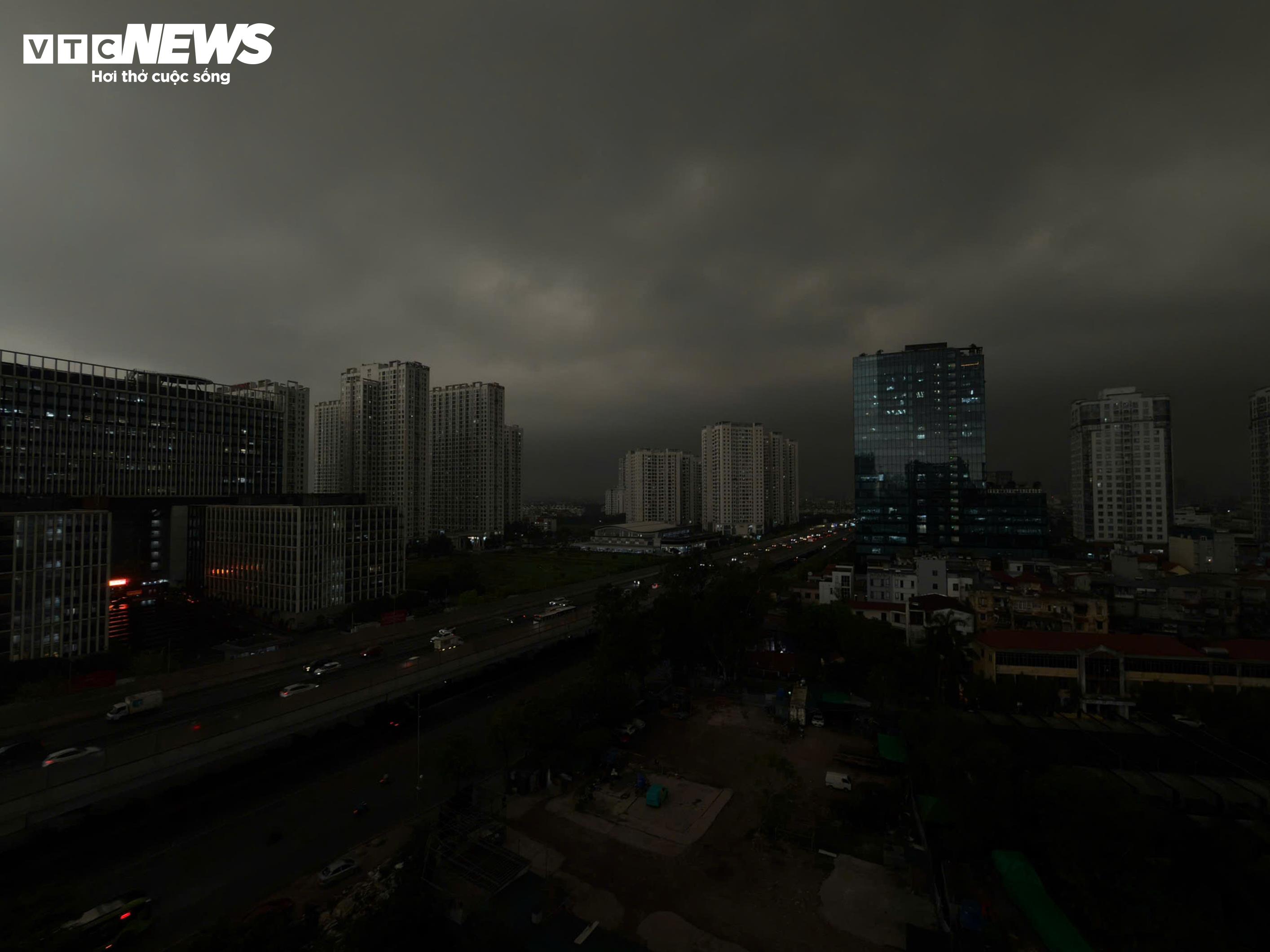 Bầu trời Hà Nội tối sầm sáng 17/4.