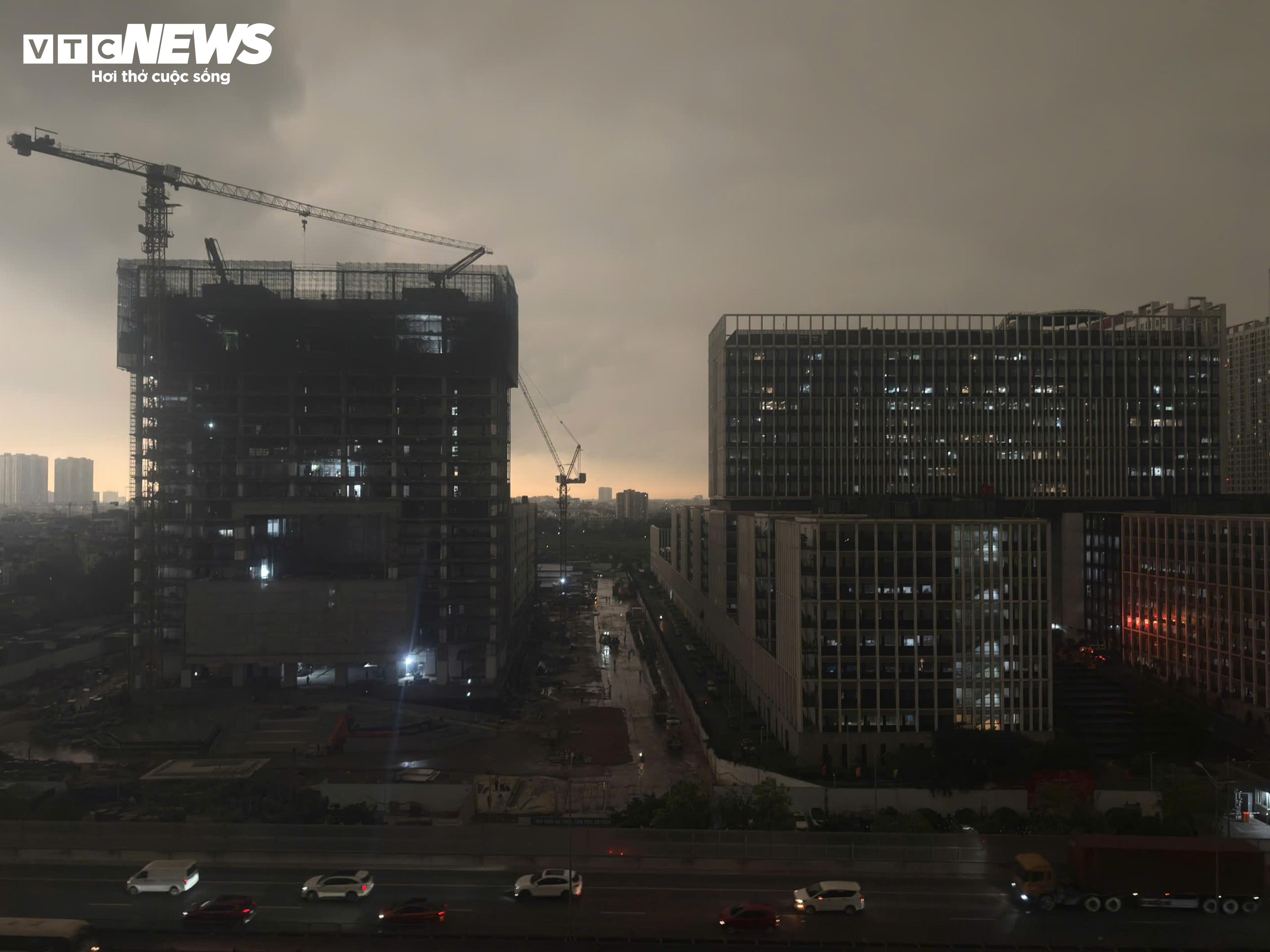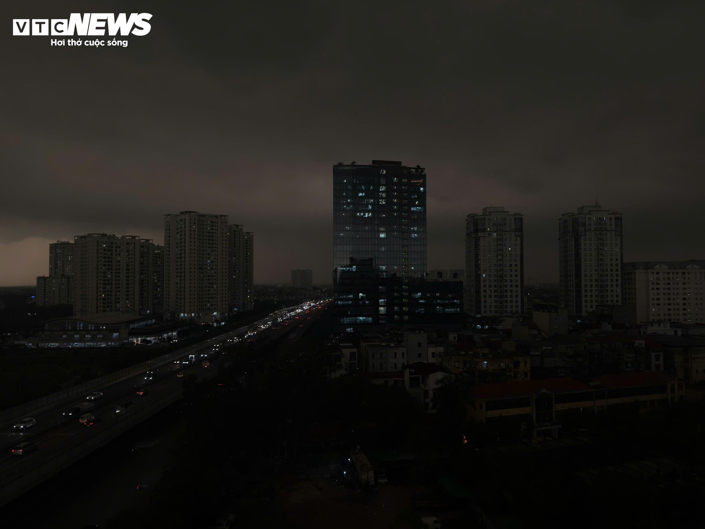 Trời Hà Nội đột ngột tối sầm lúc 8h40 ngày 17/4. (Ảnh: Viên Minh)