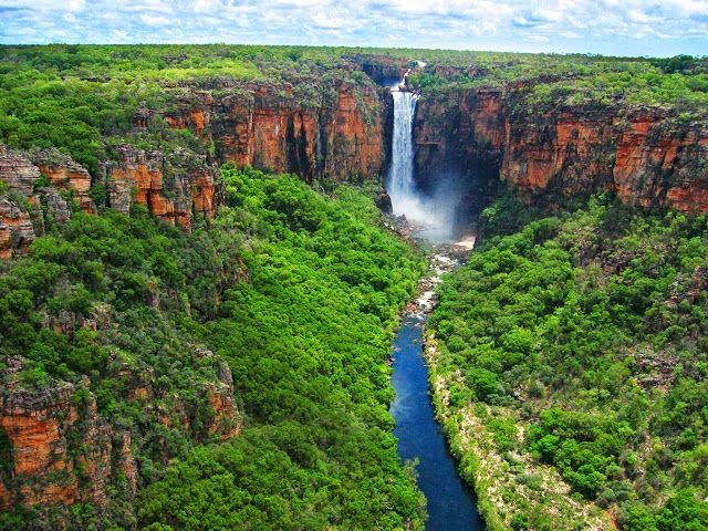 Có hệ thống sông ngòi phong phú và thác nước hùng vĩ. Thác Jim Jim và thác Song sinh là hai điểm đến nổi tiếng nhất của Vườn quốc gia Kakadutrong mùa mưa. Ảnh: Pinterest.