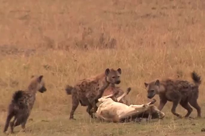 - Video: Bầy linh cẩu hợp sức quật ngã, xé xác bò con lạc đàn giữa thảo nguyên. Nguồn: Mama Hyena.