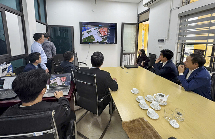 Các đại biểu theo dõi dữ liệu và hình ảnh giám sát từ UAV truyền về trong quá trình bay thực nghiệm.