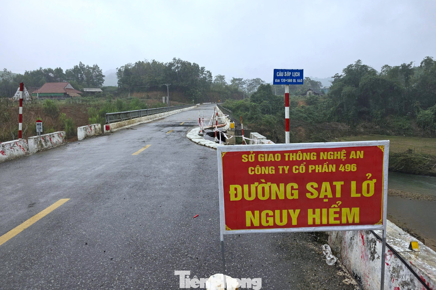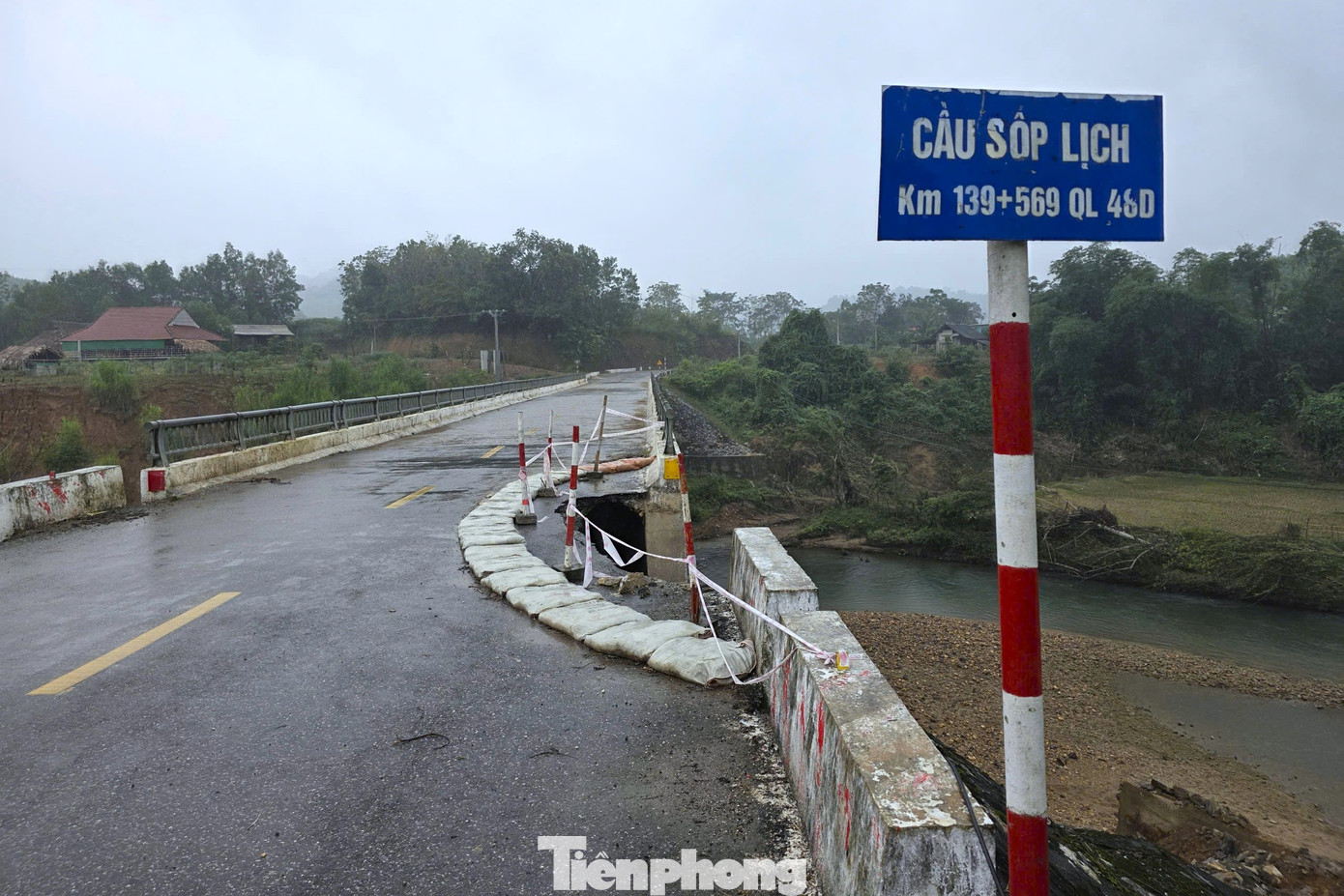 Tại đầu mố cầu Sốp Lịch, km139+596 trên quốc lộ 48D đoạn qua xã Hùng Chân cũng xuất hiện sụt lún.