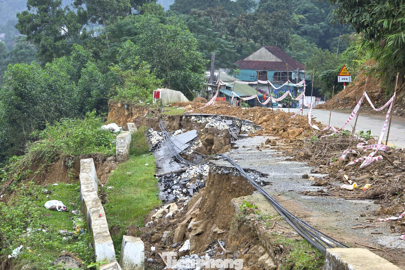 Theo người dân địa phương, do mưa kéo dài, đất nền bị nhão, triền đồi mất độ liên kết, dẫn đến sạt lở. Một số vị trí taluy âm cũng xuất hiện hiện tượng sụt lún, tạo nên các “bẫy tử thần” ngay trên mặt đường, đe dọa an toàn đối với người và phương tiện lưu thông qua tuyến.